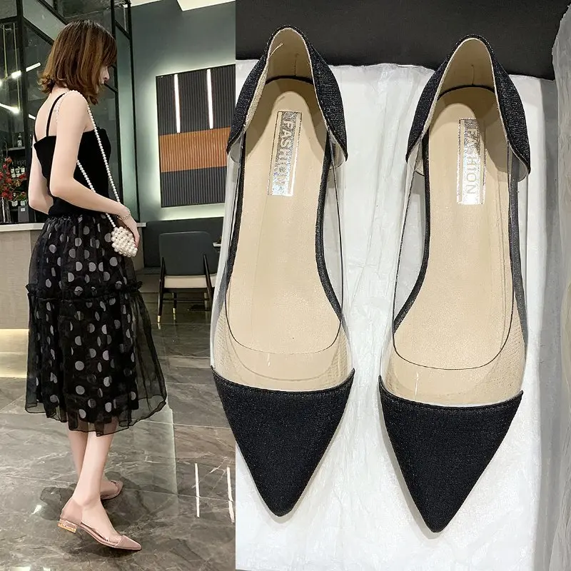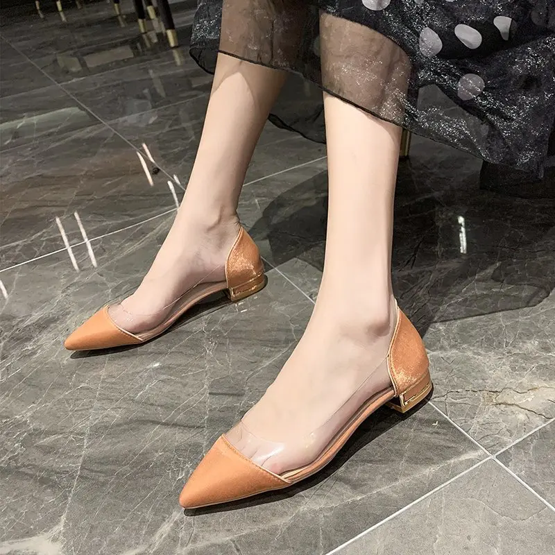 Балетки размера плюс женские прозрачные, без застежки, плоская подошва, карамельные цвета, 8922N, весна-лето 2021