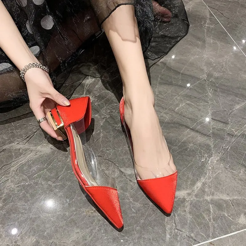 Женские туфли-лодочки с острым носком, на квадратном каблуке