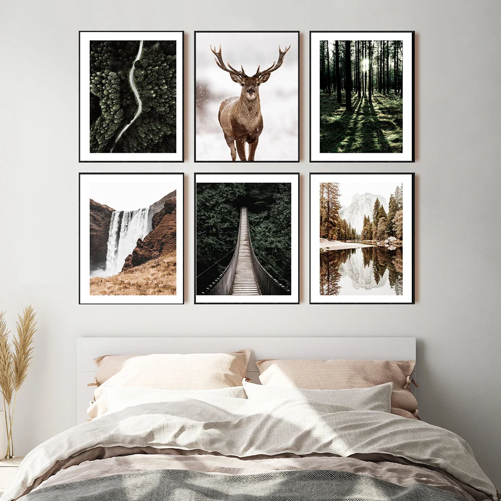 Скандинавский пейзаж из путешествия холст картина горного Лесной Олень Nordic плакат печать настенные картины Современный Декор в гостиную