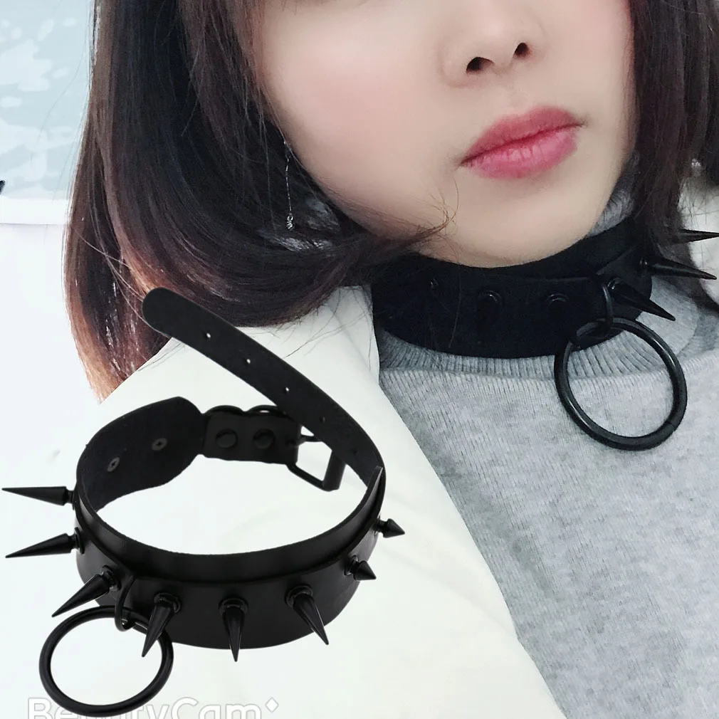 Женское кожаное ожерелье с шипами, ожерелье-чокер в готическом стиле