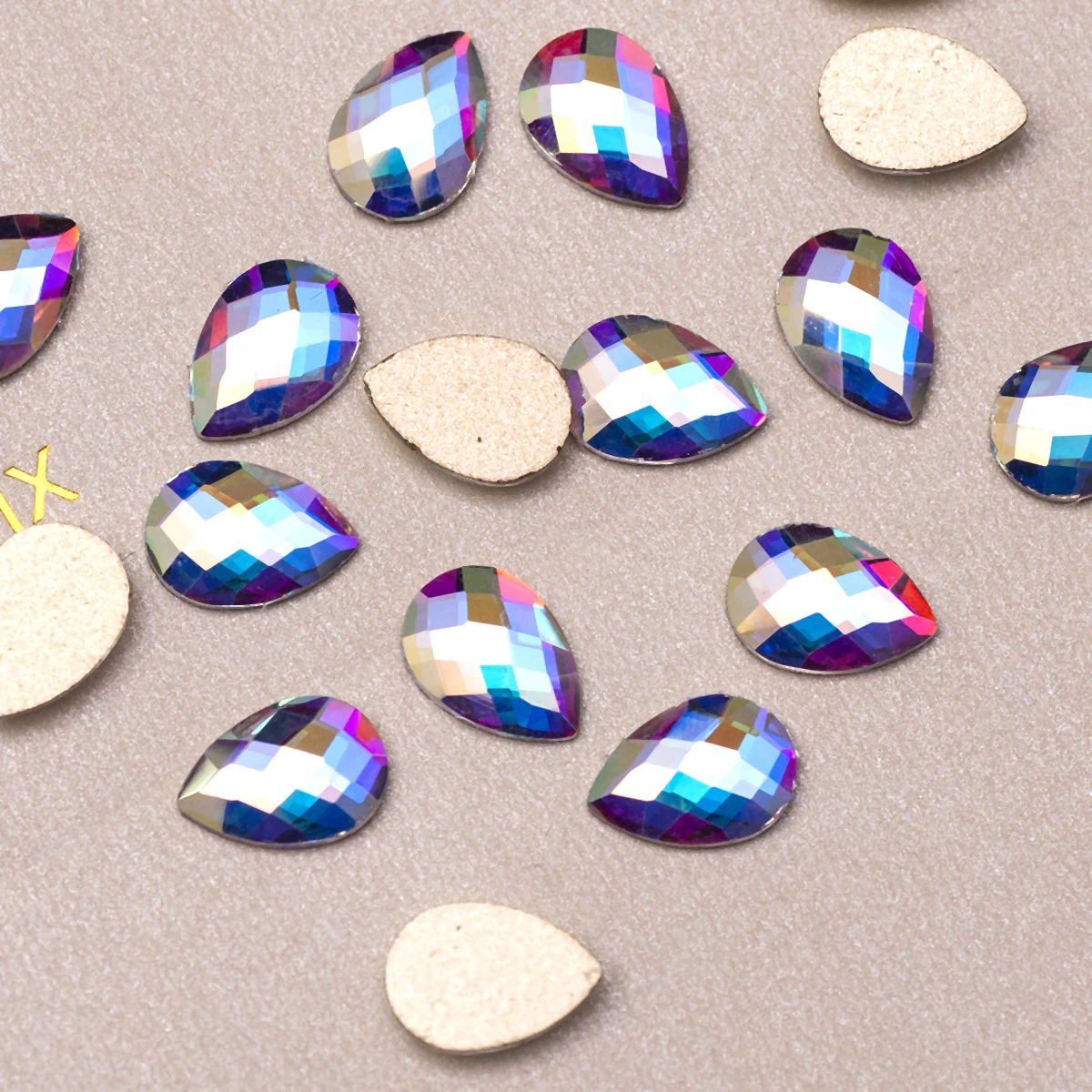 Новый стиль 6x8 мм 7x10 мм большая капля ногтей Стразы AB Сияющий головистой формы Стекло кристаллы Применение для ногтей DIY украшения Стразы s
