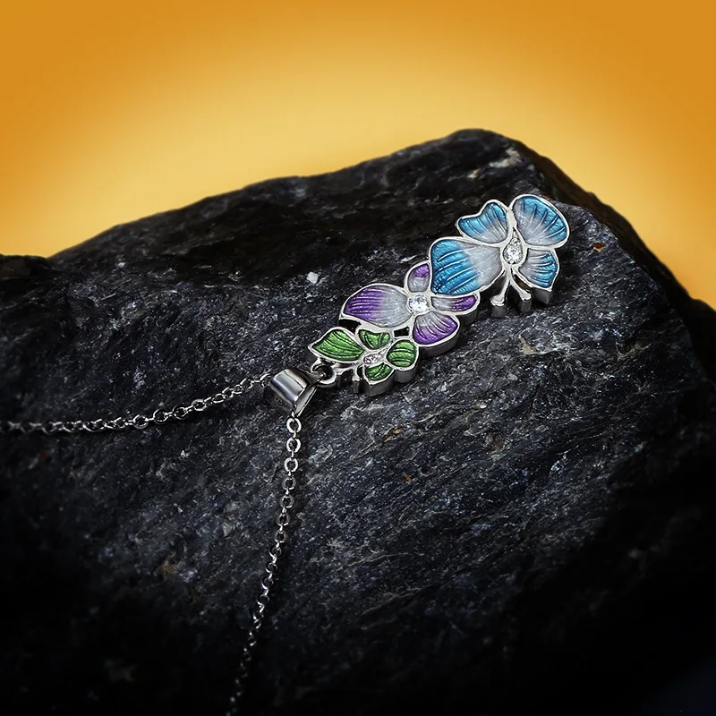 Креативные две бабочки, креативные две бабочки, эмалированные Цветы, женские цепочки на свитер, женские ювелирные изделия из серебра 925 пробы