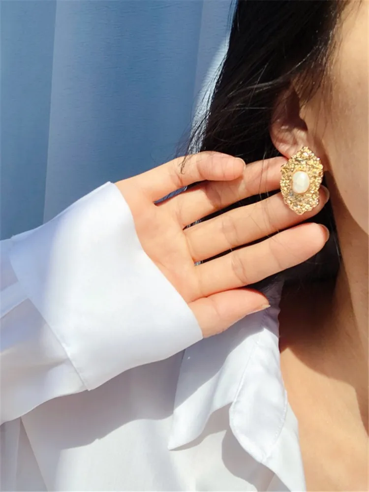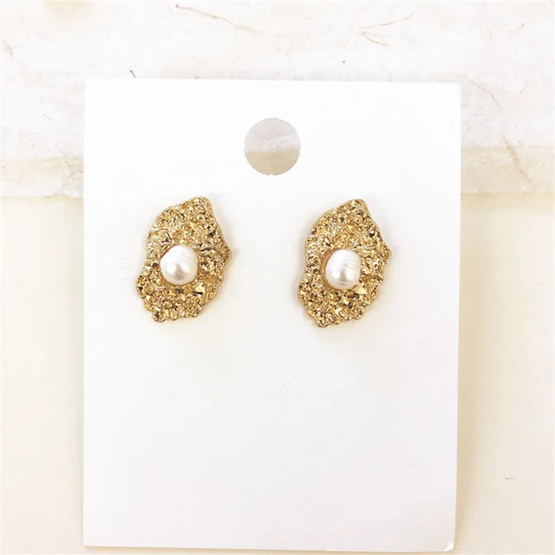 Kshmir модный морщин вулканической лавы натуральные пресноводные жемчужные серьги-гвоздики металлические Золотые Ювелирные серьги 2021