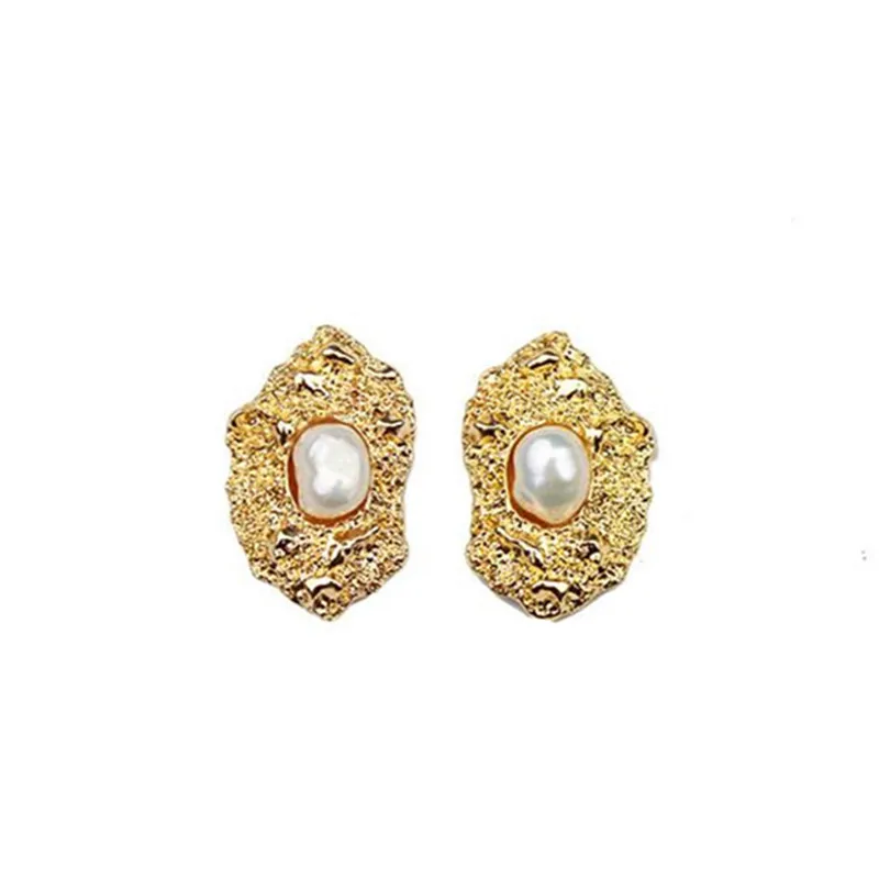 Kshmir модные морщинки Лава натуральный пресноводный жемчуг женские серьги металлические Золотые Ювелирные серьги 2021