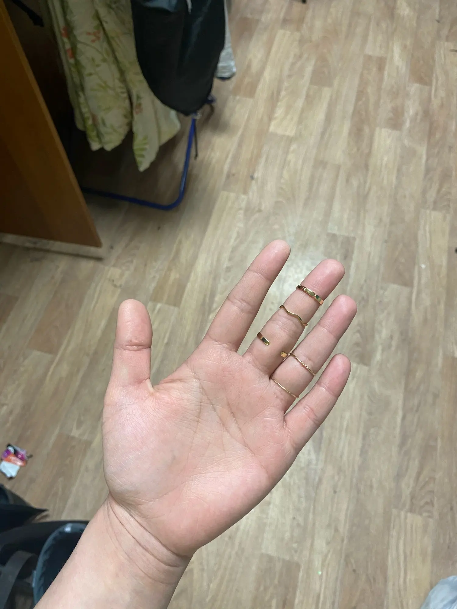 Всего 2 кольца с изменяемым размером. Осьальные очень маленькие. Одно кольцо сломано