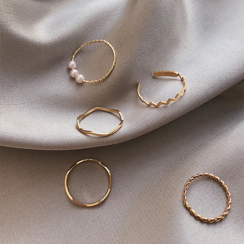Набор Колец женских, 5 шт.компл., с жемчугом