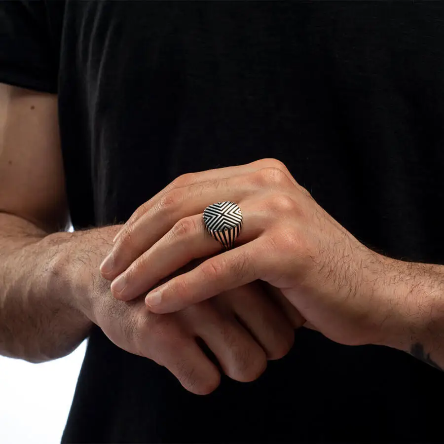 Кольцо мужское из серебра 925 пробы, с геометрическим мотивом
