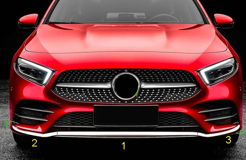 Подходит для Mercedes Benz A Class W177 V177 AMG Line 2019 2020 автомобильные аксессуары хромированный передний бампер нижний Гриль Крышка молдинг 3 шт.