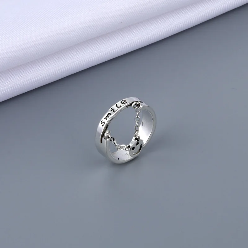2021 винтажный античный серебряный цвет Счастливый смайлик Открытые Кольца для женщин мужчин унисекс Хип-Хоп Регулируемые панк кольца модные ювелирные изделия