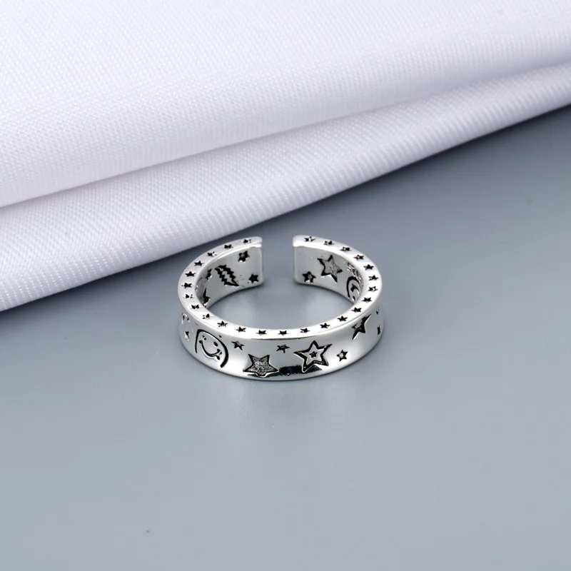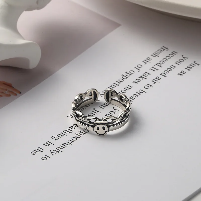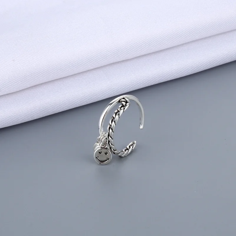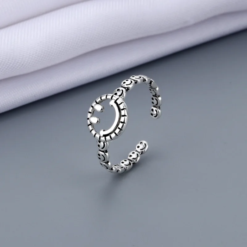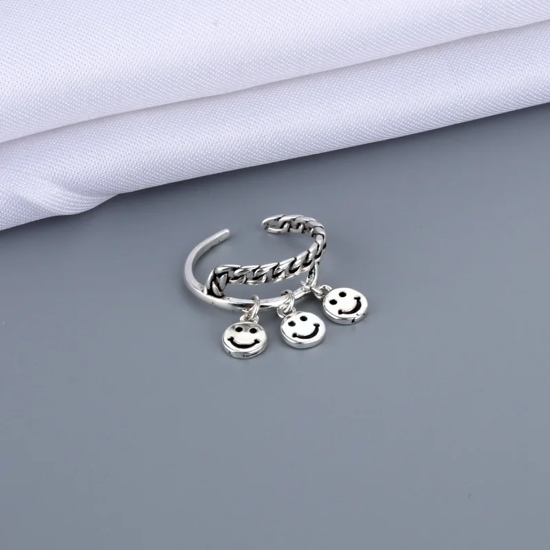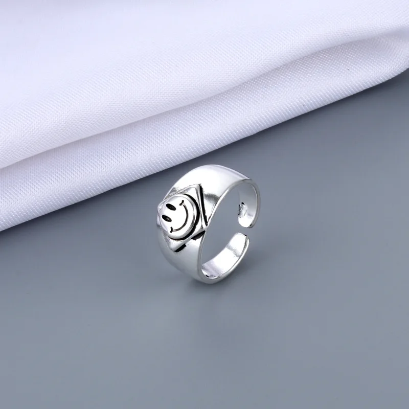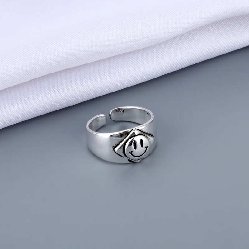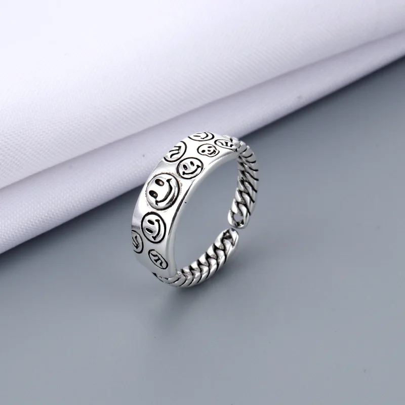 2021, Ретро стиль, древний серебряный цвет, Счастливый смайлик, открытые кольца для женщин и мужчин, унисекс, хип-хоп, регулируемое кольцо в стиле панк, модное ювелирное изделие