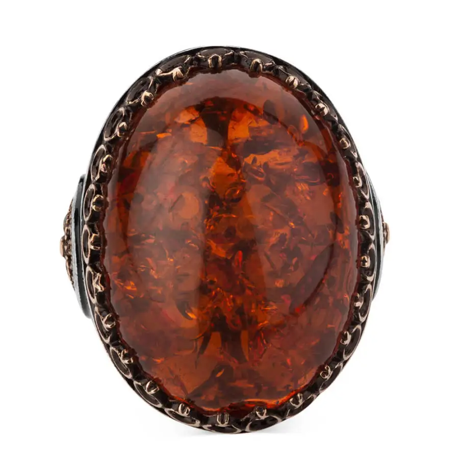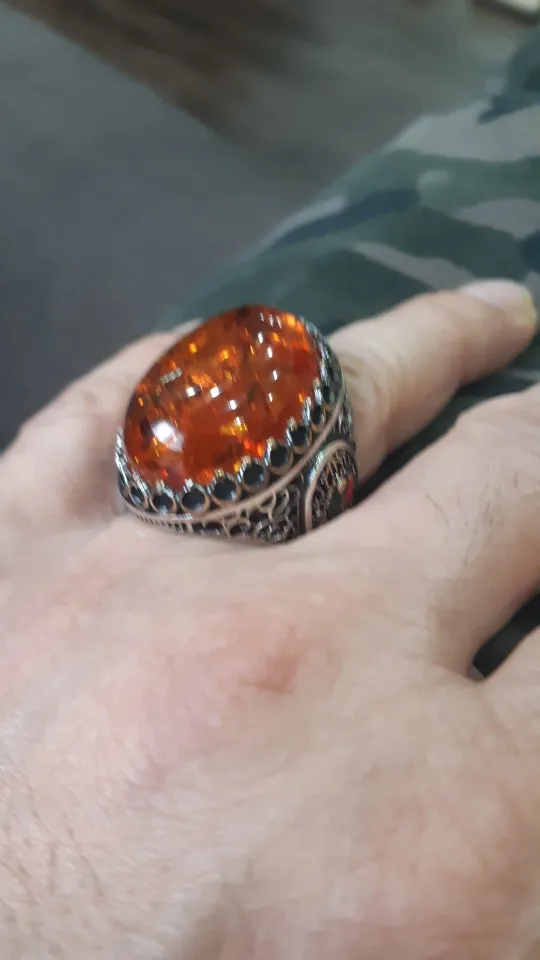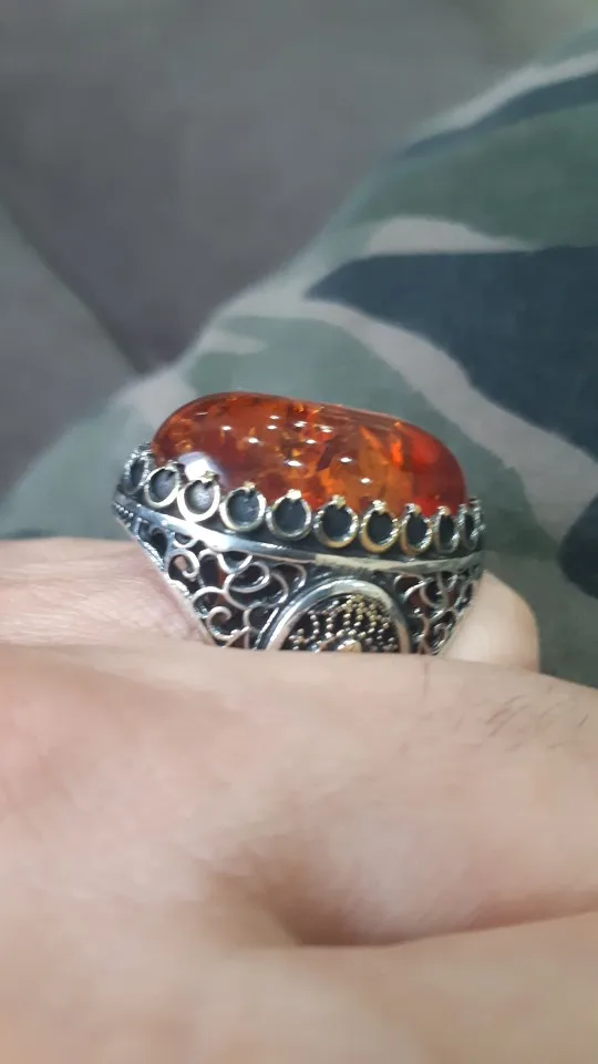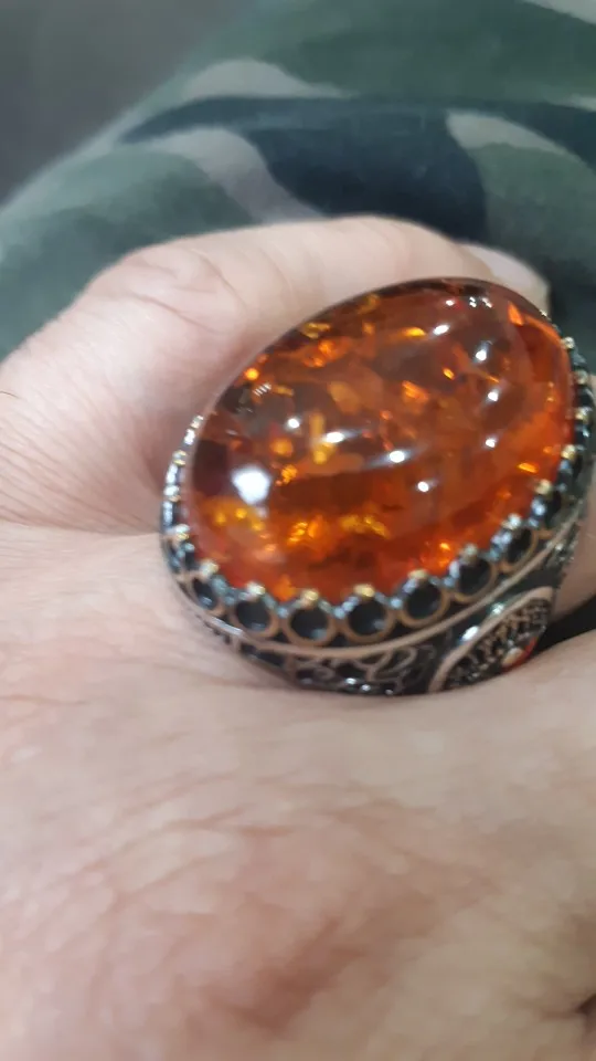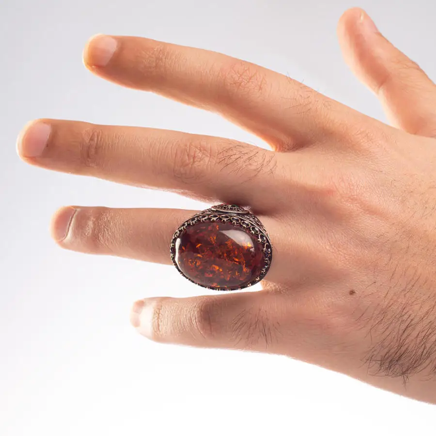 Кольцо Янтарное с крупным синтетическим камнем, серебро 925 пробы, винтажный оттоманский герб, кольцо для тяжелых мужчин, турецкие аксессуары для мужчин