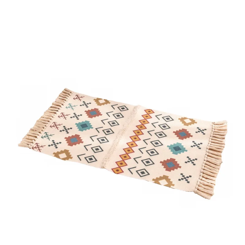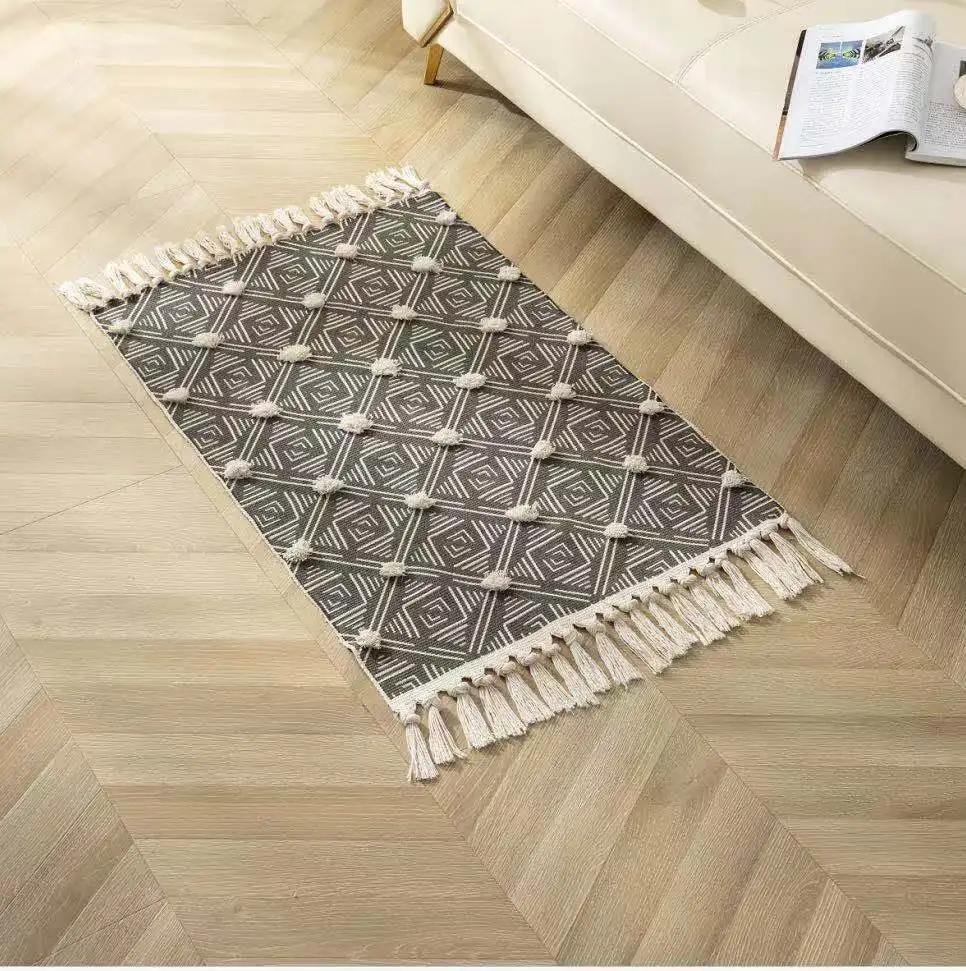 Ретро богемный ручной тканый хлопковый льняной ковер с марокканским...