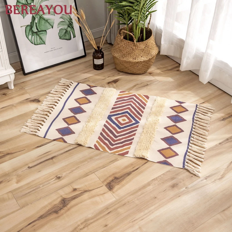 Плетеный вручную богемный ковер в стиле ретро, льняные коврики с пр...