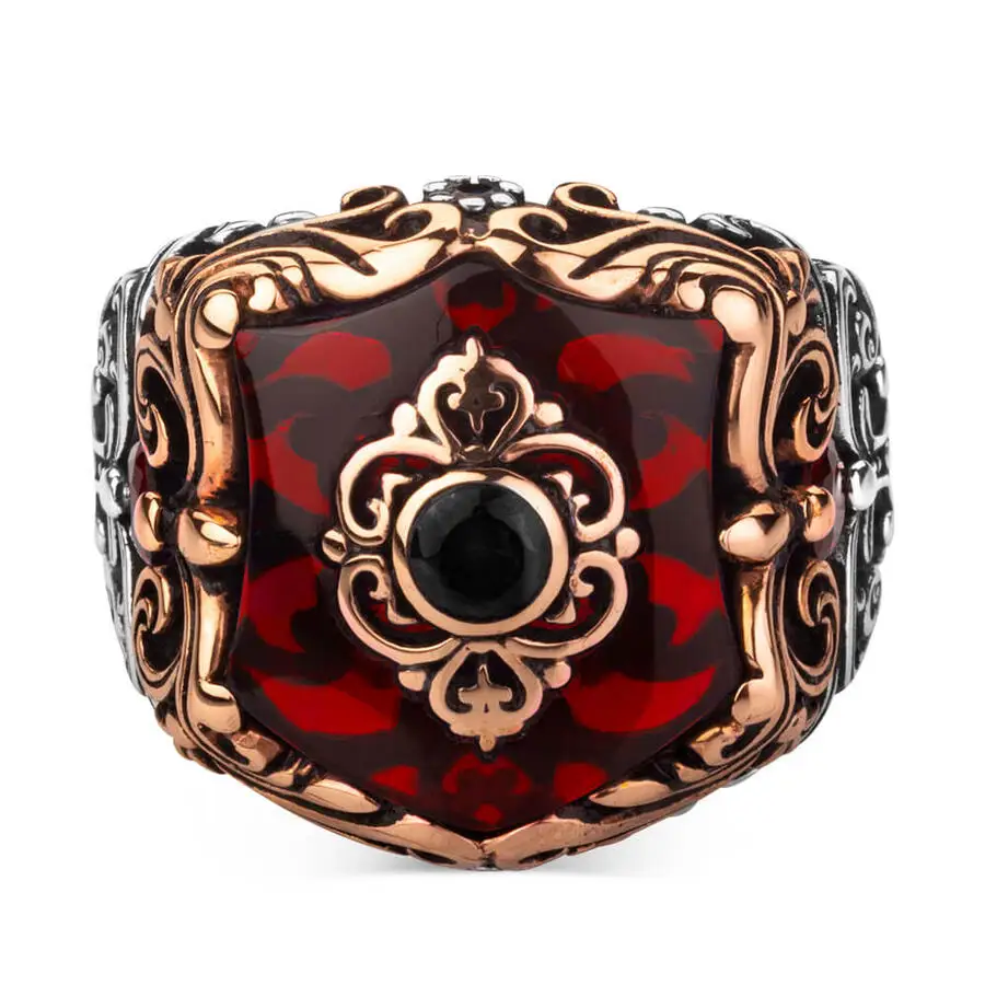 Серебряное мужское кольцо с красным цирконом, мужские украшения ручной работы, Винтажные Украшения, высококачественное кольцо из Турции, мужские подарки