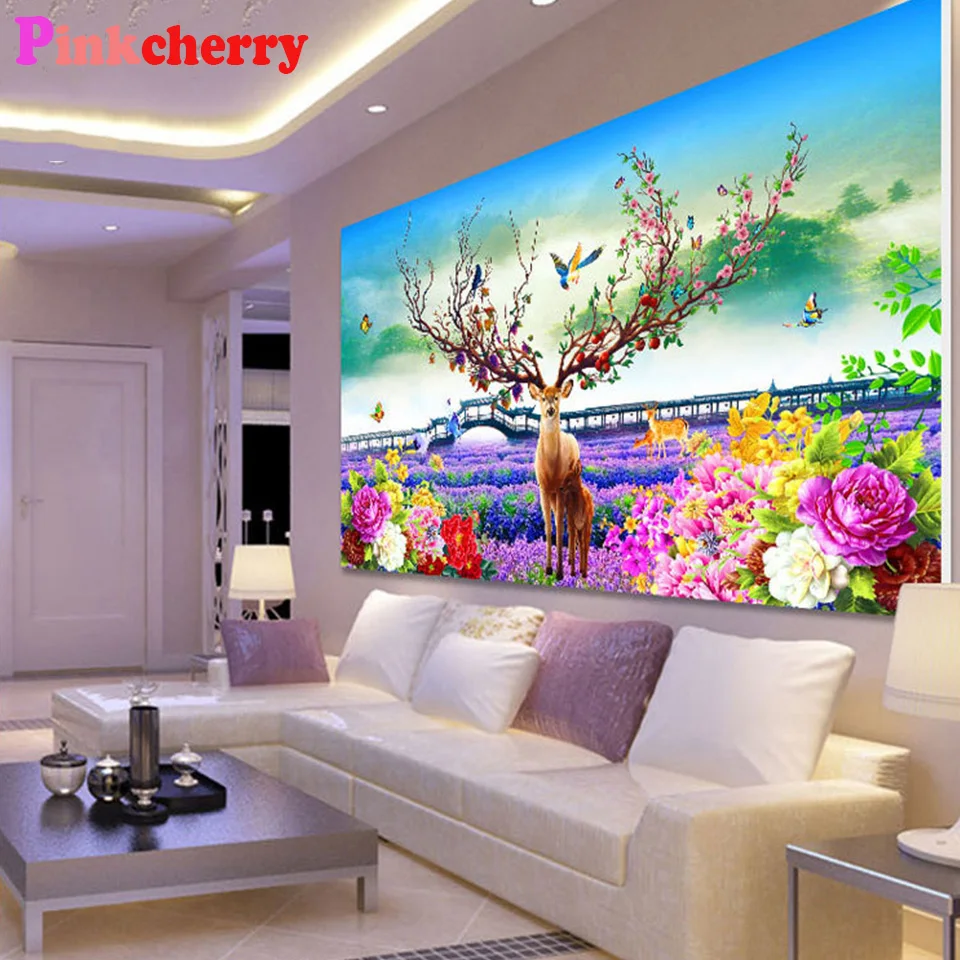 Алмазная вышивка "сделай сам", с изображением оленя, пиона, круглые стразы, алмазная живопись, вышивка крестиком, домашнее искусство