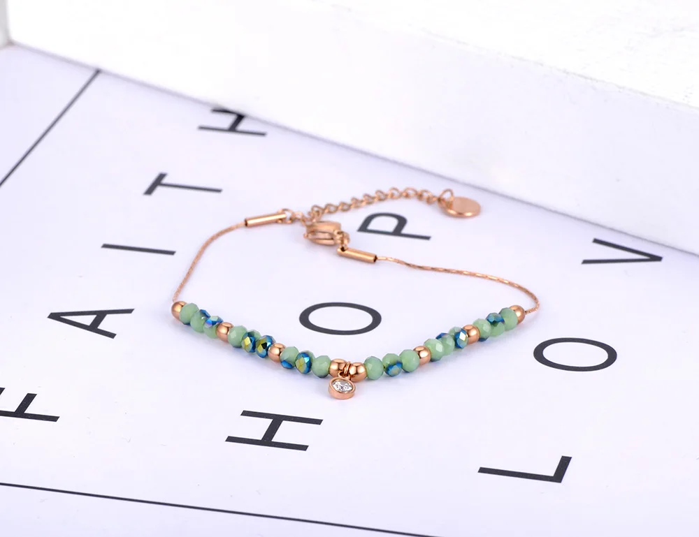 Женский браслет Lokaer B20189, браслеты-подвески со сверкающими зелеными фианитами из нержавеющей стали, пляжный браслет в богемном стиле