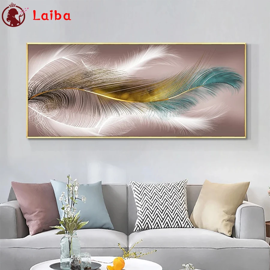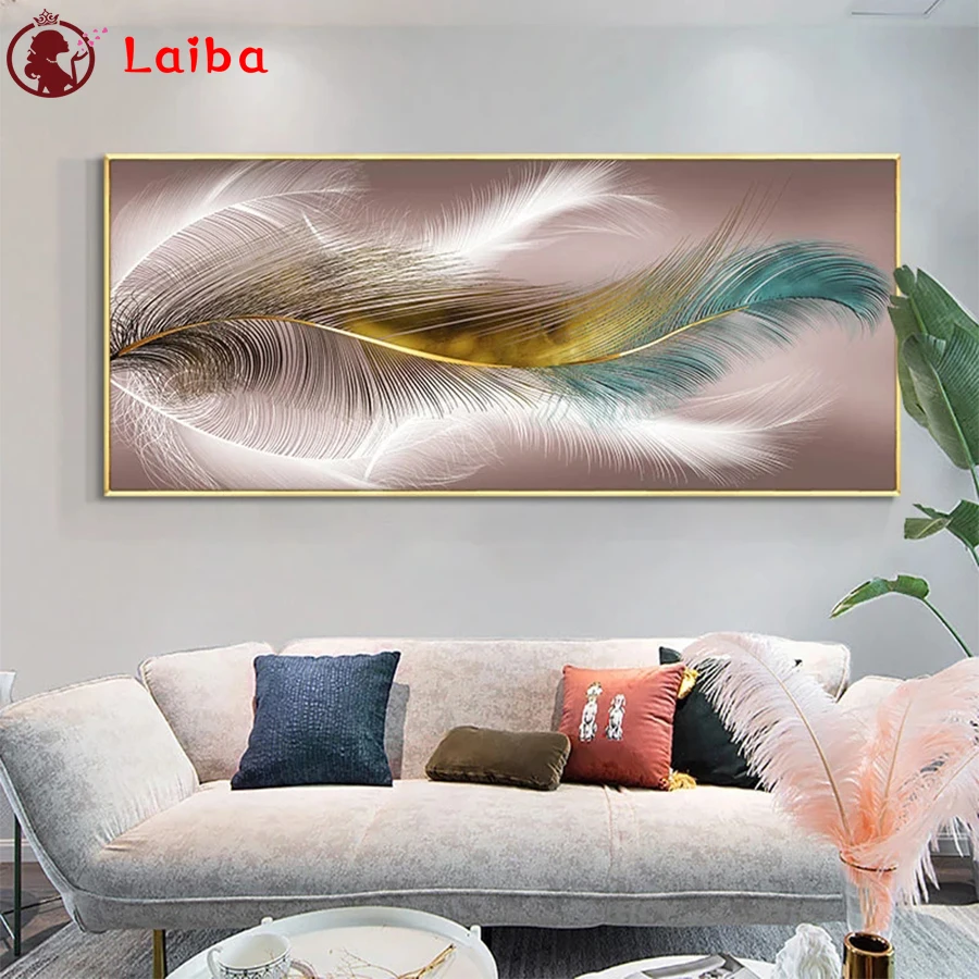 5D алмазная живопись сделай сам, абстрактное искусство, цветные перья, вышивка крестиком, квадратнаякруглая Алмазная мозаика, вышивка