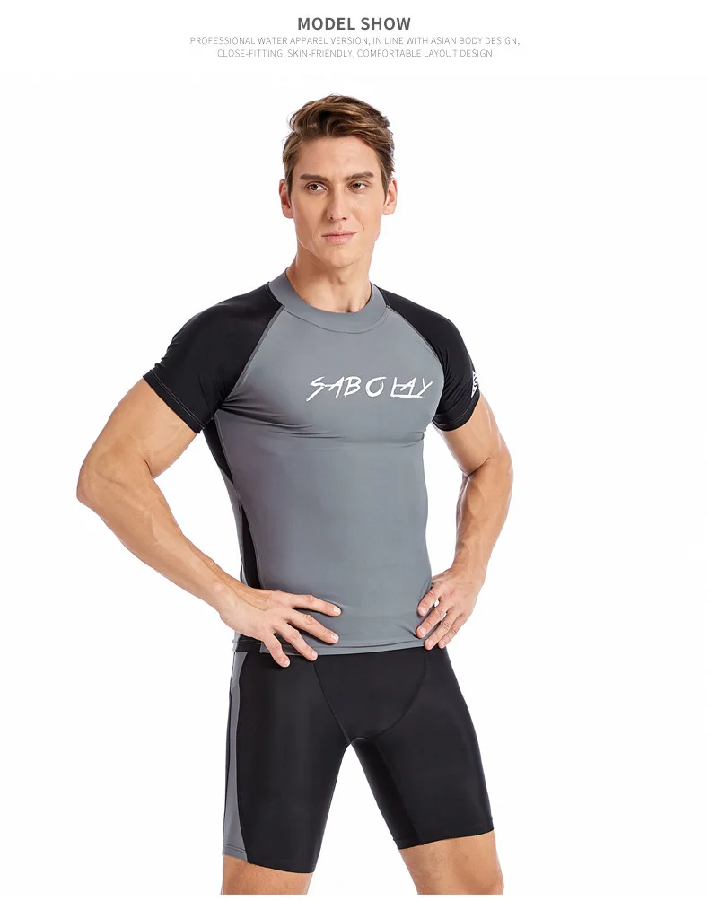 L-5XL большой Размеры мужские серфинга Рашгард купальные рубашки с коротким рукавом, с коротким рукавом, Мужская Рашгард быстрой сухой Дайвинг Плавательный костюм гидрокостюм одежда