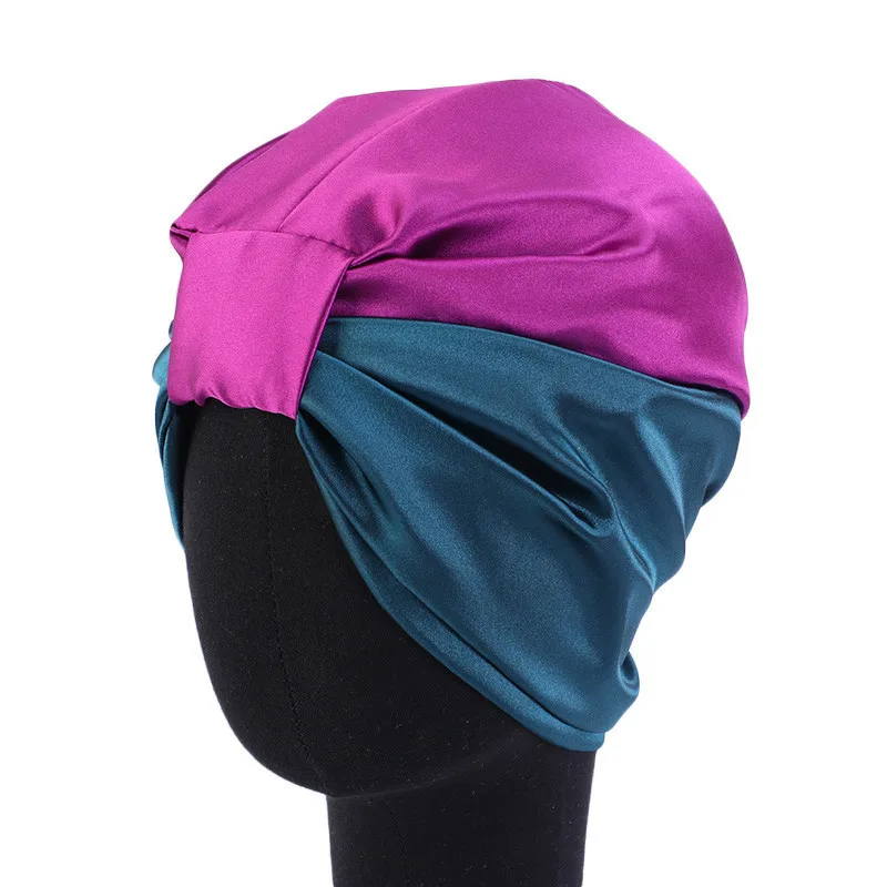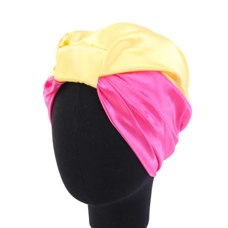 Двухслойный стрейч Шелковый Тюрбан шляпа для женщин мусульманский платок шапка Дамская атласная шапка для ночного сна шапка для выпадения волос шапка Хемо