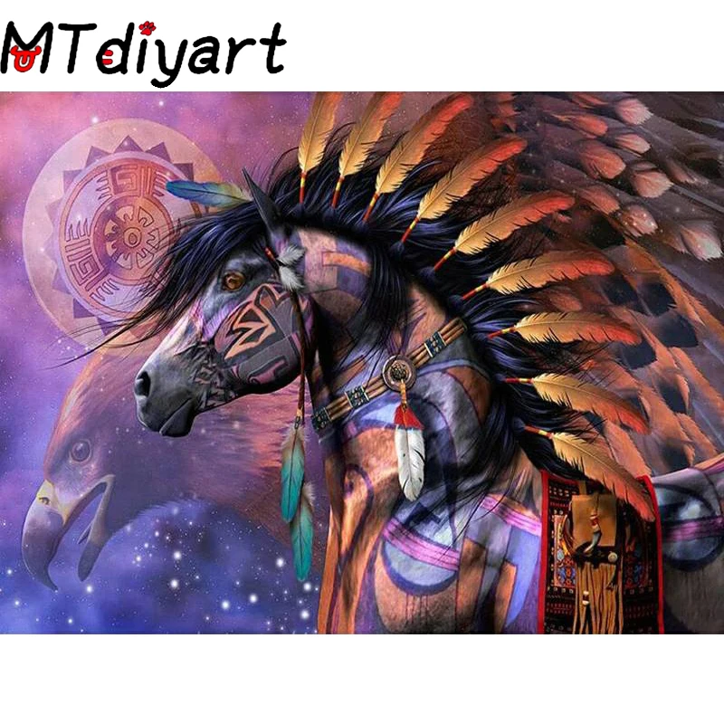 Алмазная живопись 5D "сделай сам", индейская лошадь, полная вышивка, вышивка крестиком, мозаика, Набор для творчества, животное, настенная наклейка, домашний декор, набор