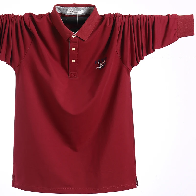 Размера плюс 6XL-L 2021, Мужская Однотонная рубашка-поло с длинным ...