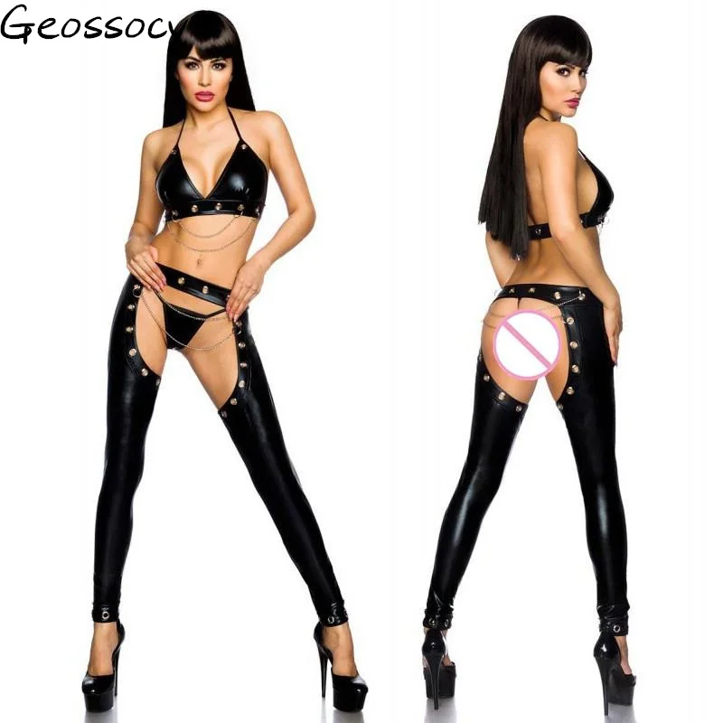 Сексуальные ножки Искусственная кожа костюм кошки из ПВХ дутая цепочка из латекса комбинезон цепи с открытой промежностью, Клубная одежда Фетиш Горячее Эротическое белье боди