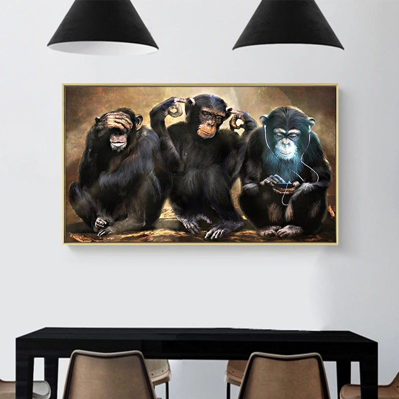 Настенная живопись AAHH с изображением обезьяны, забавная картина маслом из трех орангутанов, Настенная картина для украшения дома, плакаты и принты