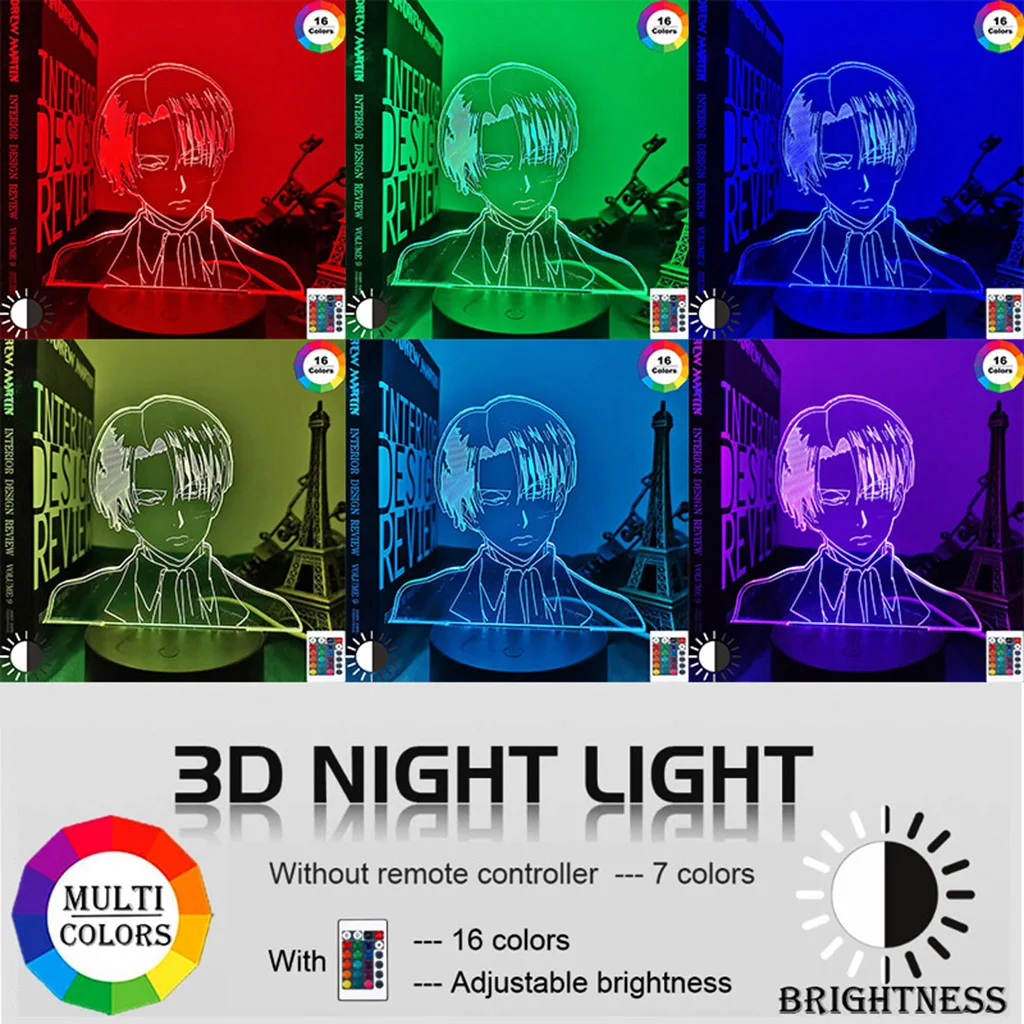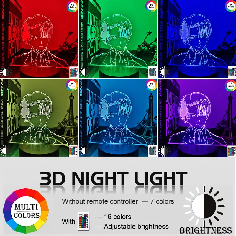 Акриловая 3D лампа Леви Аккерман Атака Титанов для домашнего декора светильник детский подарок Леви Аккерман светодиодный ночсветильник аниме
