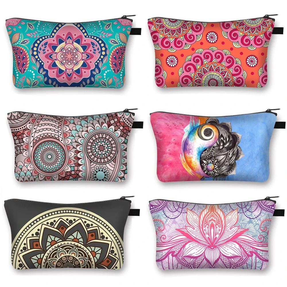 Косметички с цветочным принтом мандала, женская косметичка, водонепроницаемая косметичка, органайзер, Женская многофункциональная косметичка