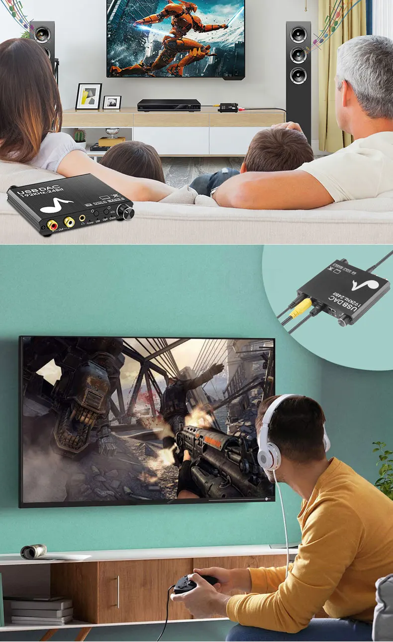 1.Этот ЦАП поддерживает цифровой аудиоформат PCM, пожалуйста, перед использованием Установите цифровое аудиоустройство, такое как HD TV, TV BOX или игровая консоль в PCM или LPCM audio, а не поддерживает DTS Dolby AC3.