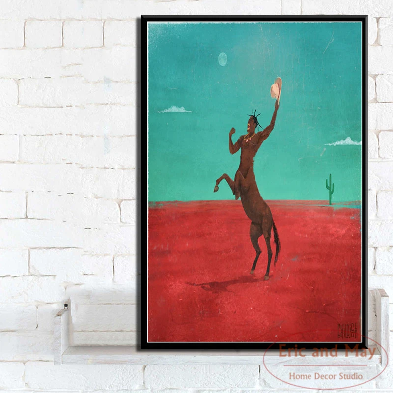 Рисунок на холсте с изображением дикого оленя и стрелы, настенный п...