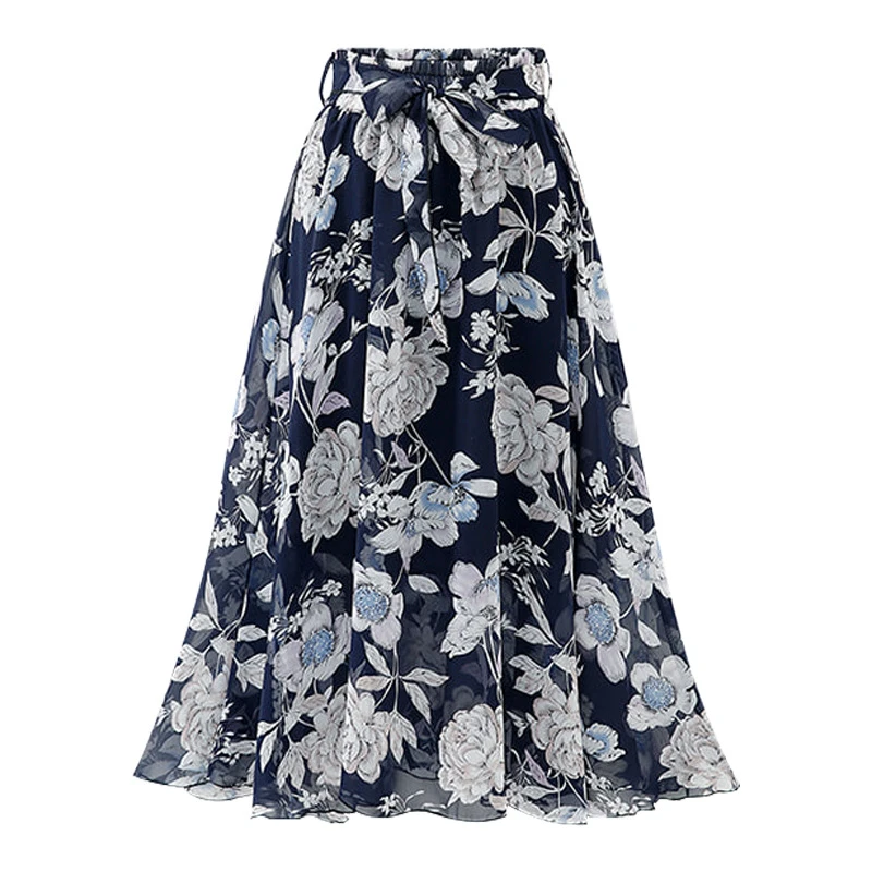 Юбка-миди из шифона, с цветочным принтом, с завышенной талией, белая, розовая, голубая, 2021