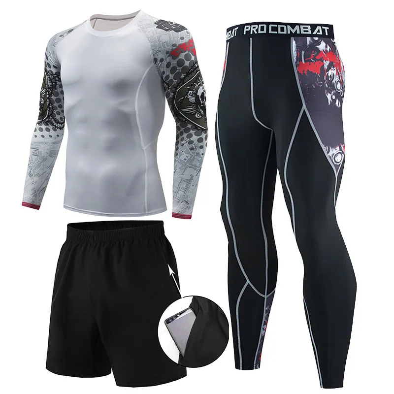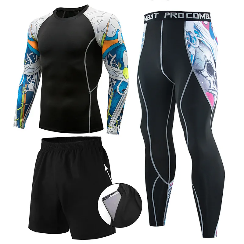3 шт.компл. мужской костюм для Mma Rashguard Мужская компрессионная...