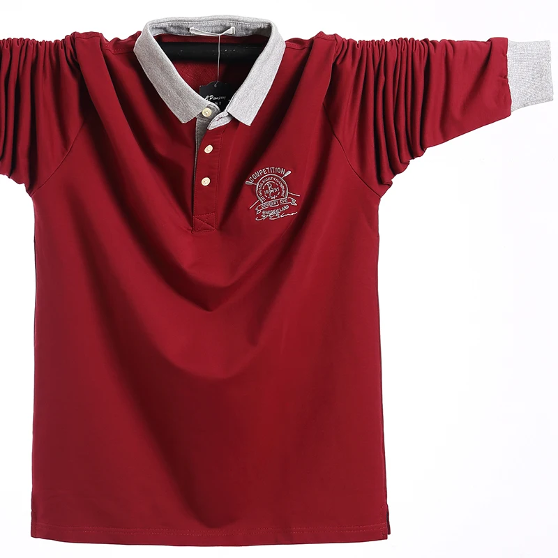 Размера плюс 6XL-L 2021, Мужская Однотонная рубашка-поло с длинным ...