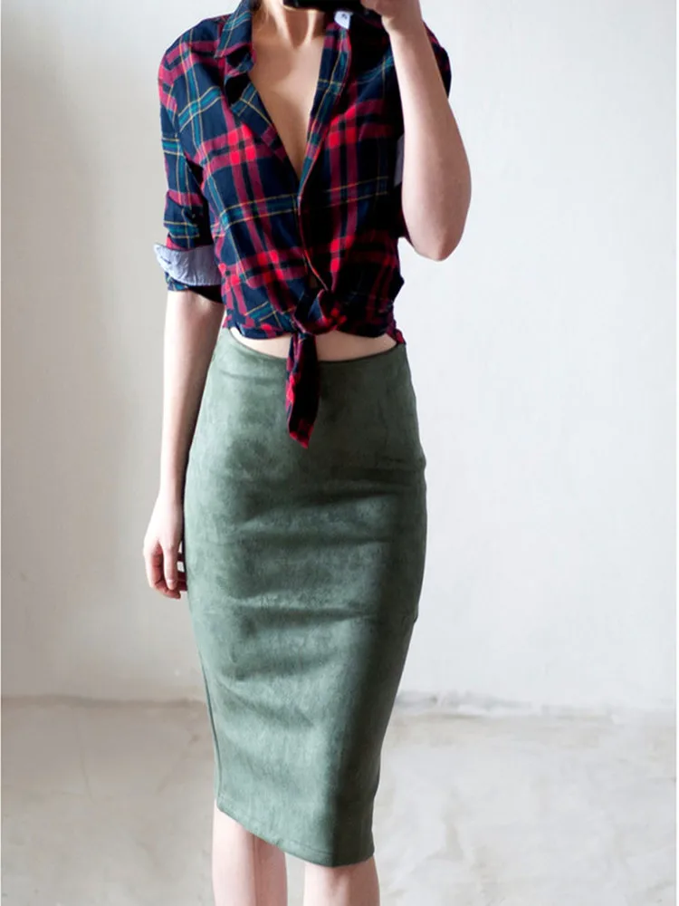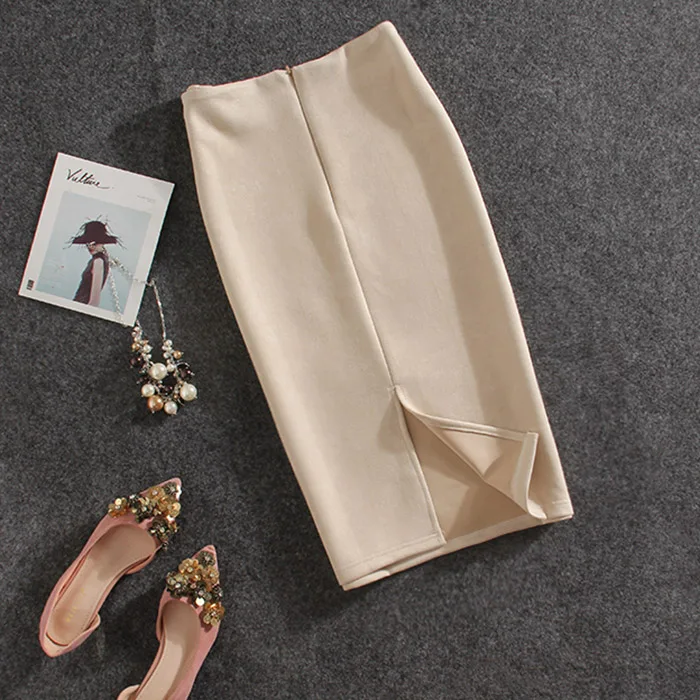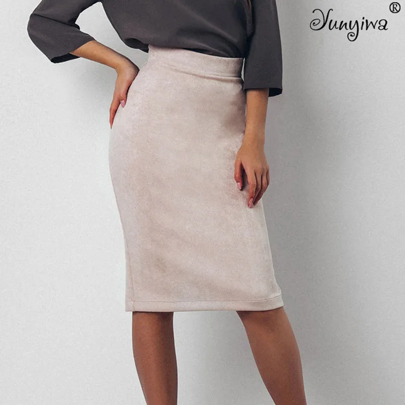 Юбка-карандаш Женская замшевая средней длины, элегантный облегающий...