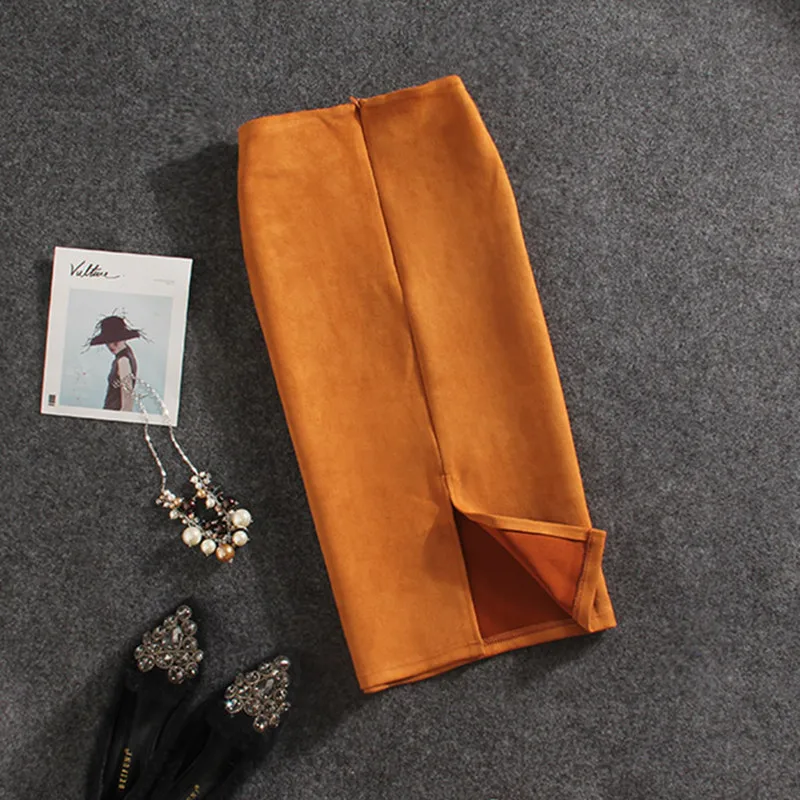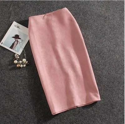 Женская замшевая юбка с разрезом, однотонная Толстая юбка с высокой...