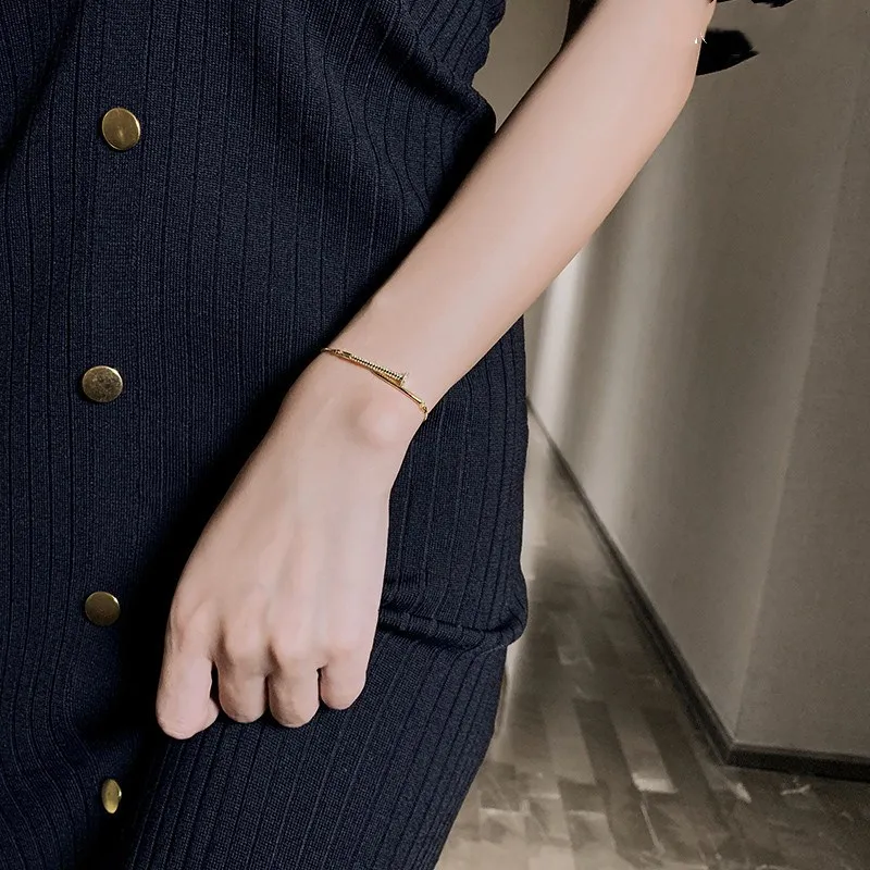 Оптовая продажа, инкрустированный цирконием браслет Liemjee для ногтей, индивидуальные модные ювелирные изделия для женщин, очаровательный подарок с именем, все сезоны