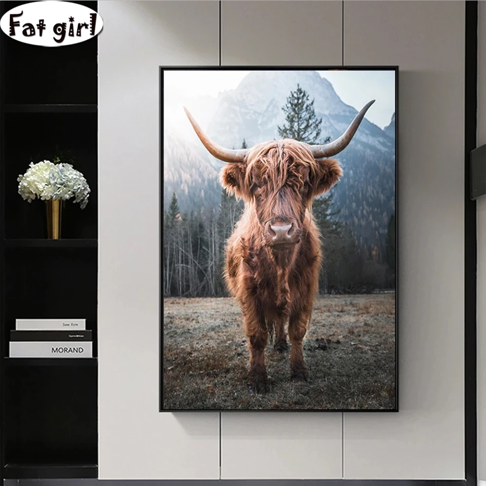 Настенная картина из коровы в скандинавском стиле 5D алмазная живопись плакаты вышивка крестиком полная квадратная мозаика вышивка круглая вышивка Декор