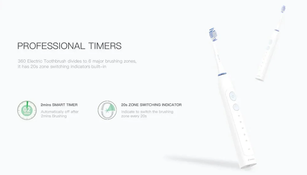 360 T1 умная зубная щетка с 5 режимами очисткифункция умного таймераВодонепроницаемость IPX7Беспроводная зарядкадлительный срок службы батареи