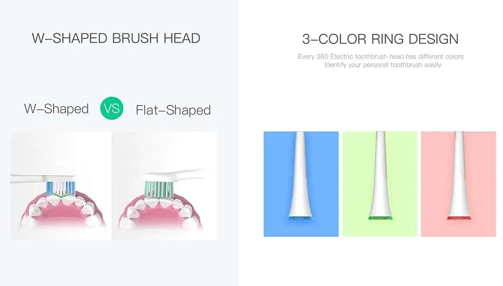 Все насадки для кистей предназначены для чувствительных зубов. Также имеется напоминание о замене головки кисти. Это имеет 3 функция управления цветовым кольцом дизайн, который дает красиво смотрятся на насадки для зубной щетки. С различными цветными головками кисти вы можете легко идентифицировать вашу щетку. А также вы можете выбрать цвет электрической щетки в соответствии с вашим выбором.