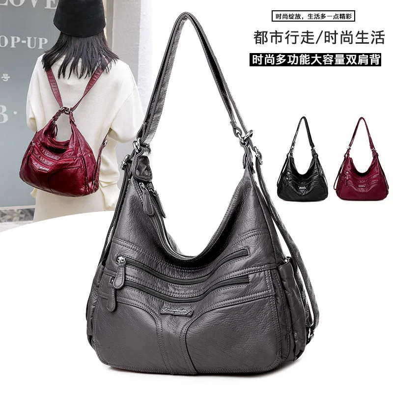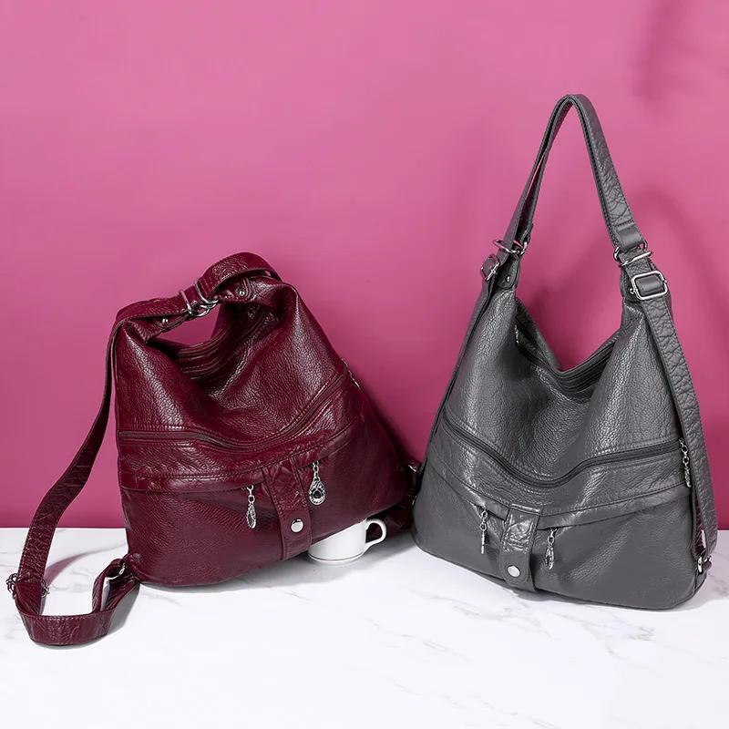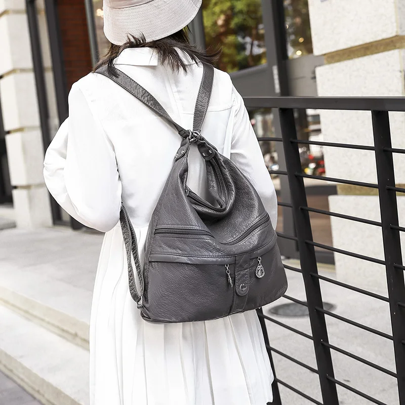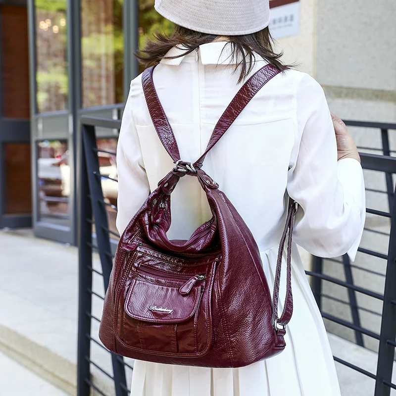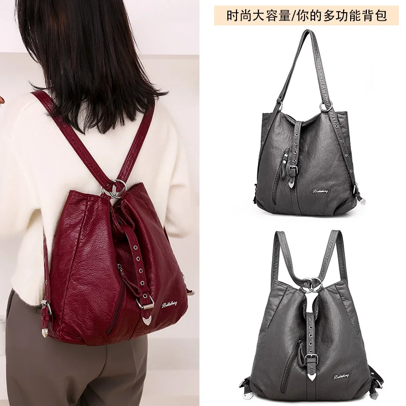 Женский рюкзак из мягкой кожи, многофункциональная дорожная сумка ч...