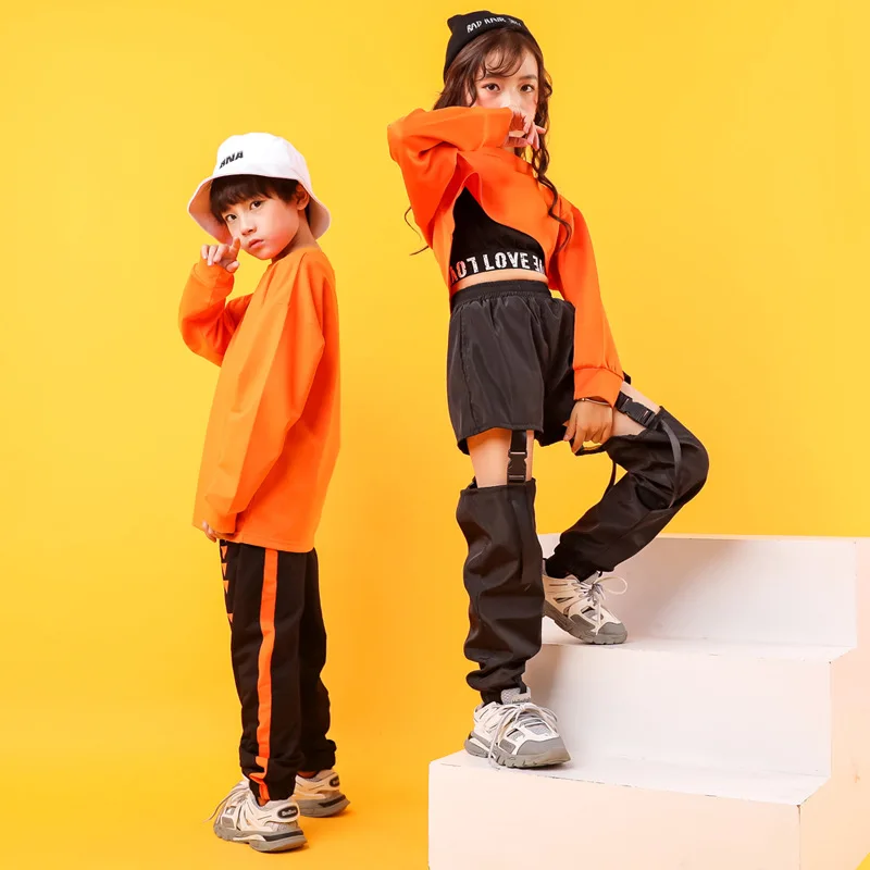 Уличные танцевальные свитшоты для мальчиков и девочек, укороченный топ, комплекты одежды в стиле хип-хоп, Детские джоггеры, спортивные штаны-карго, наряд, Детская Одежда для танцев