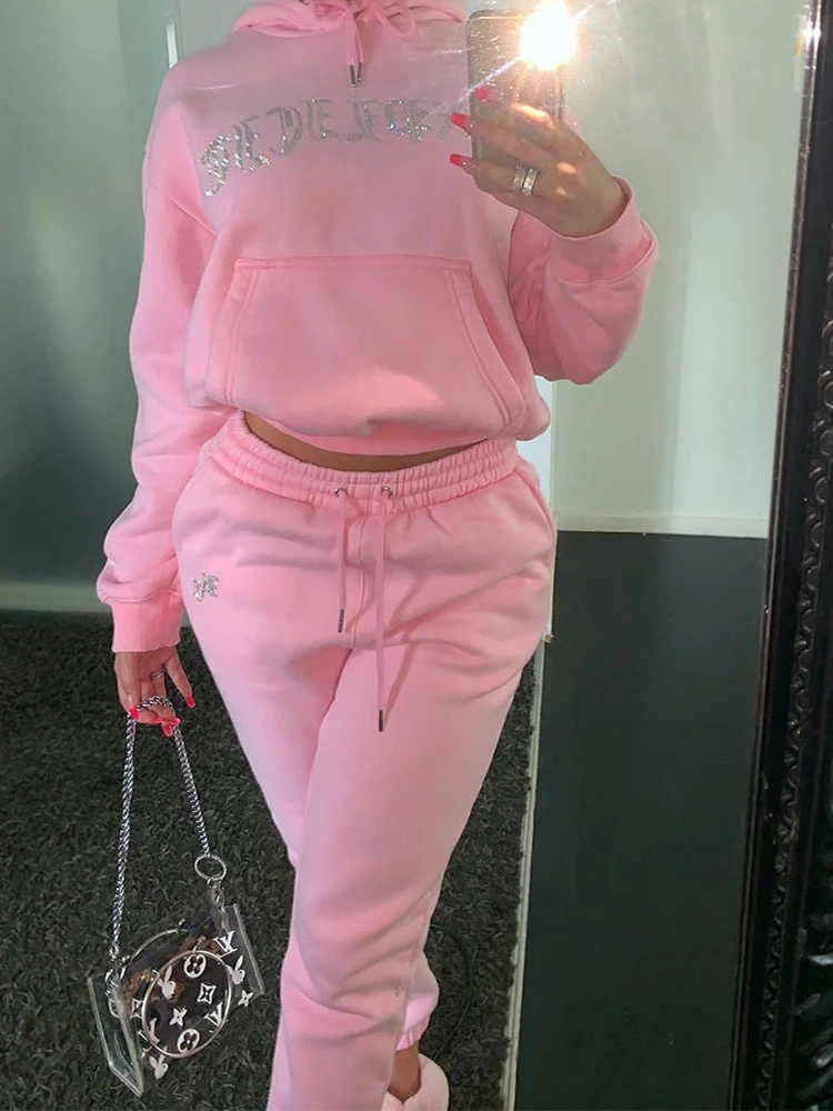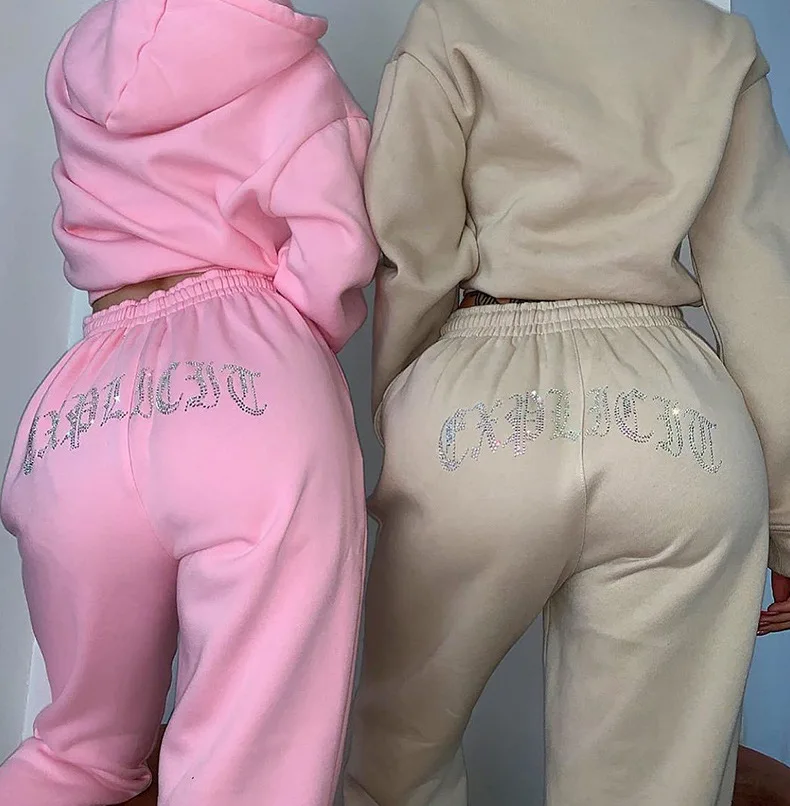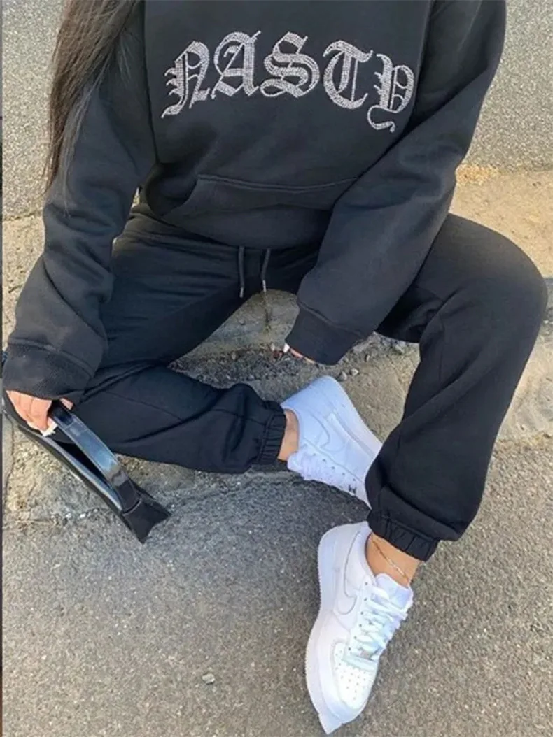Женский комплект из двух предметов с высокой талией Зимние Бархатные толстовки 2021 осень спортивные свободные толстые спортивные штаны для бега y2k спортивный костюм для женщин