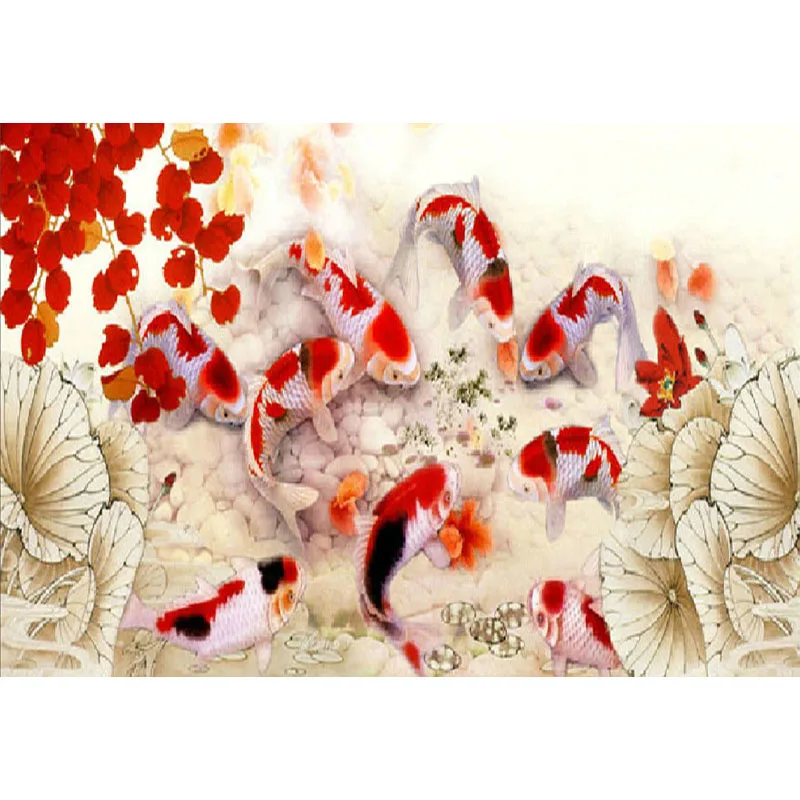 Наборы для алмазной живописи, 5D алмазная вышивка сделай сам, круглаяквадратная Алмазная мозаика с инкрустацией, золотая рыбка Лотос, художественное украшение дома