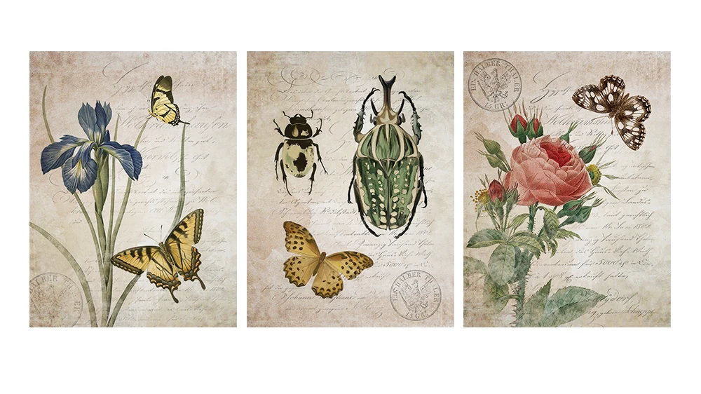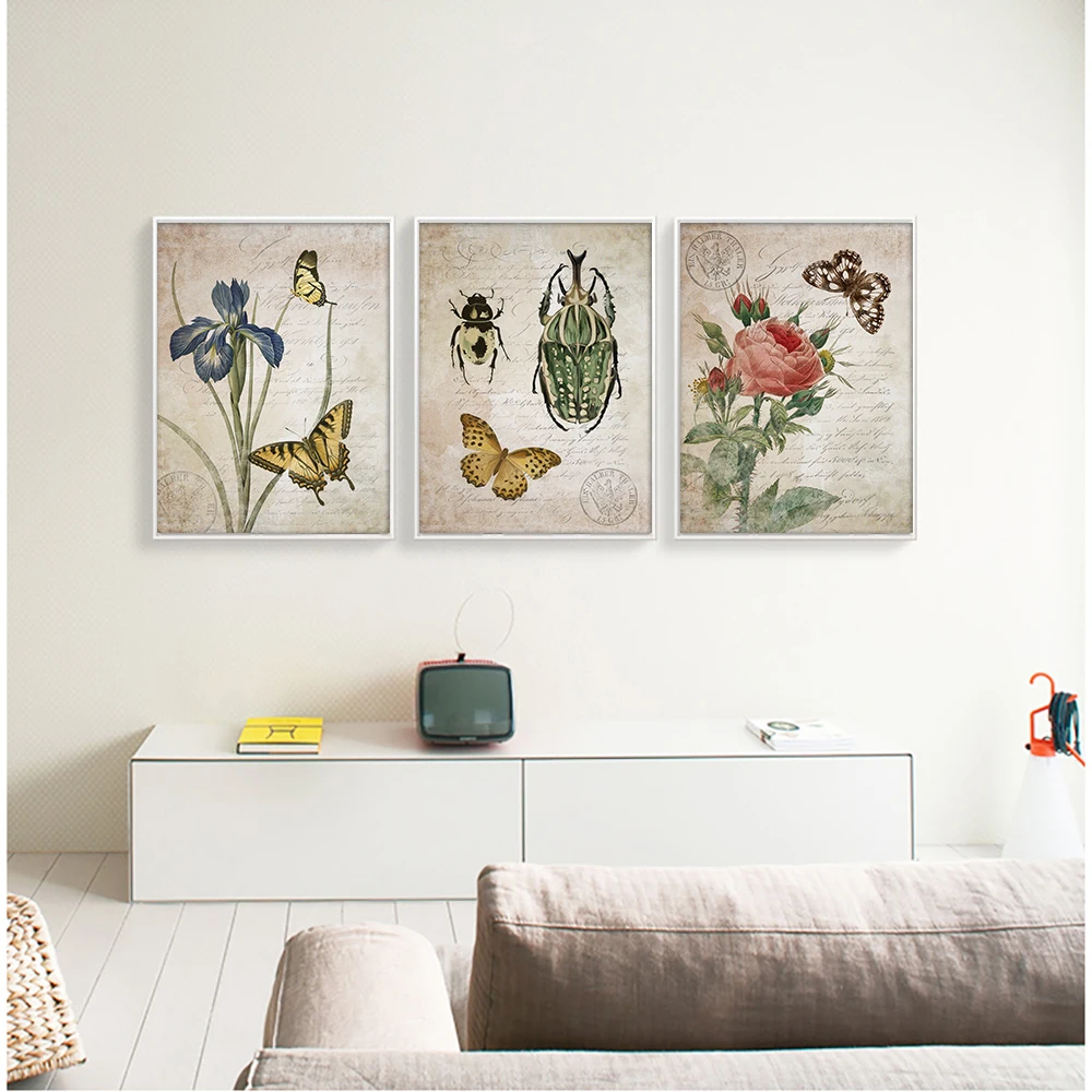 Цветочные стены искусства цветок живопись на холсте бабочка ботанический старинный плакат для спальни дом гостиная ванная комната