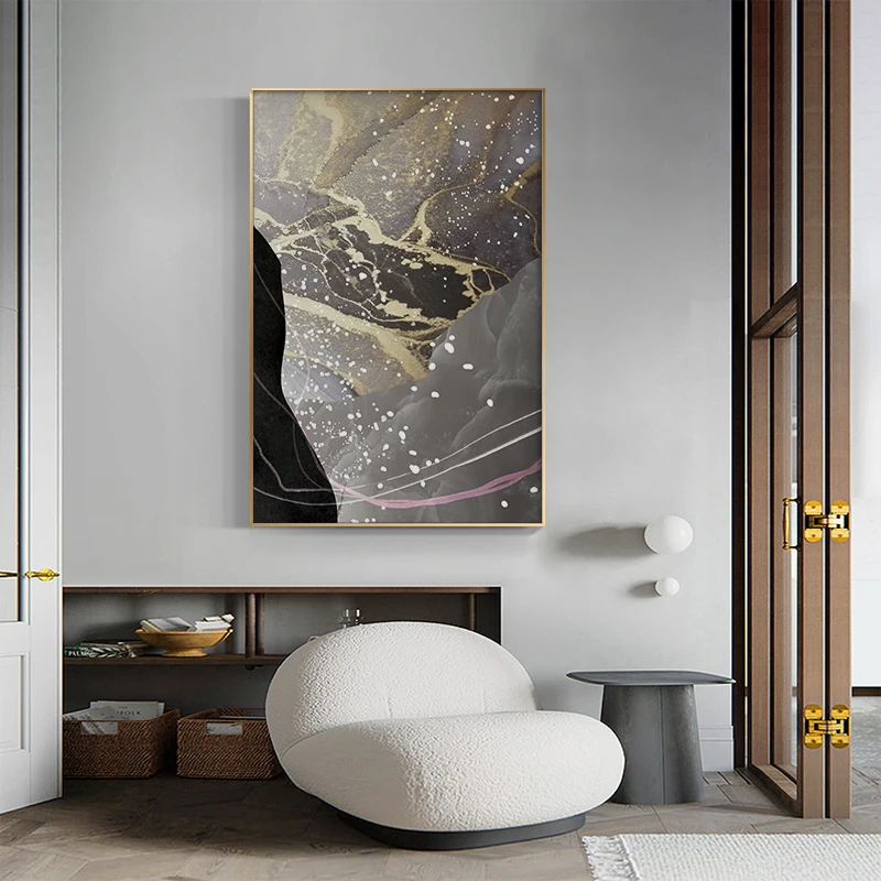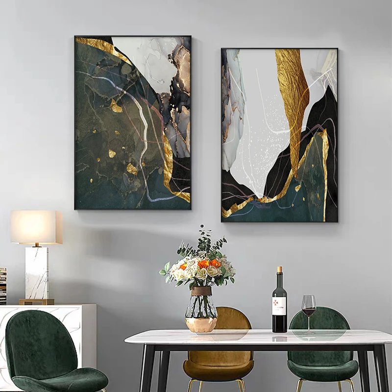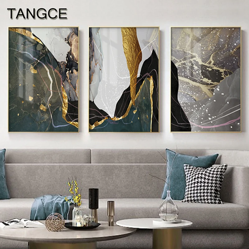 Современная Абстрактная Картина на холсте с золотыми блоками, Настенная картина из золотой фольги, плакаты и принты в скандинавском стиле, декоративное украшение для гостиной, спальни