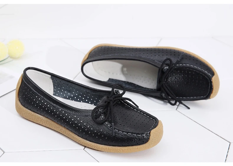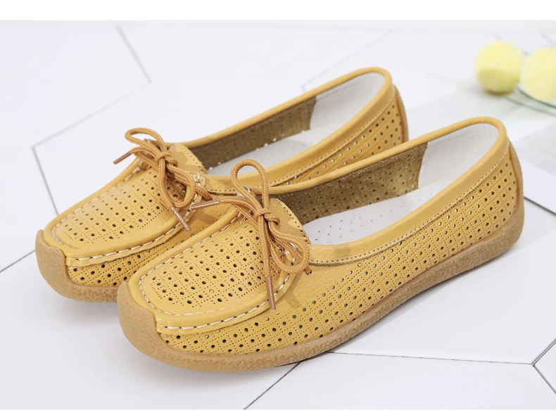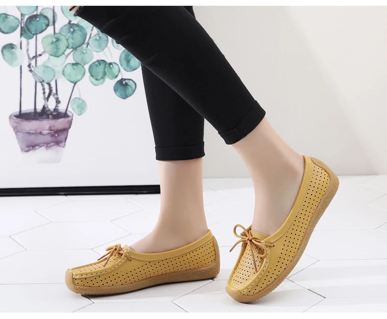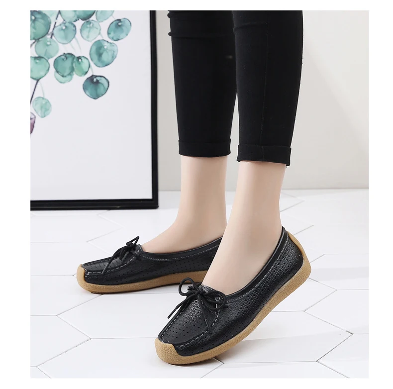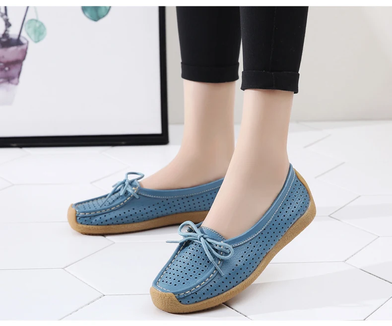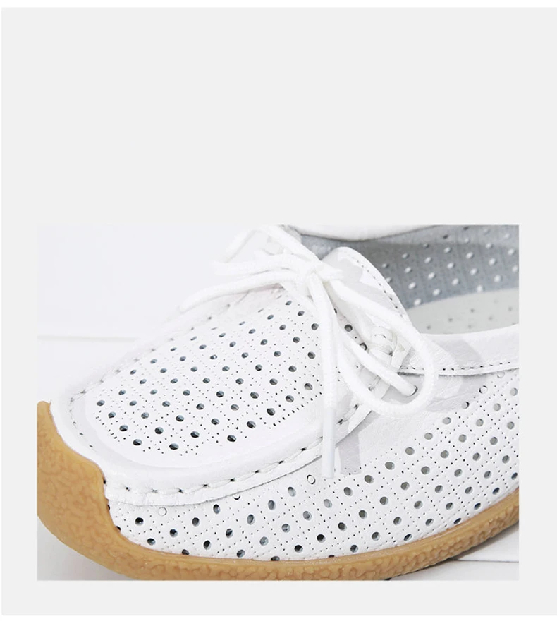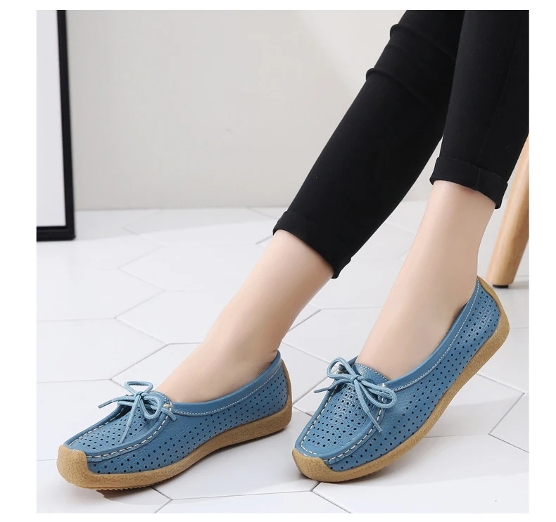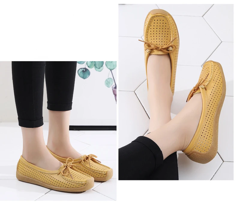 Туфли женские с вырезами, натуральная кожа, плоская подошва, лоферы, на шнуровке, Мокасины, модная летняя обувь