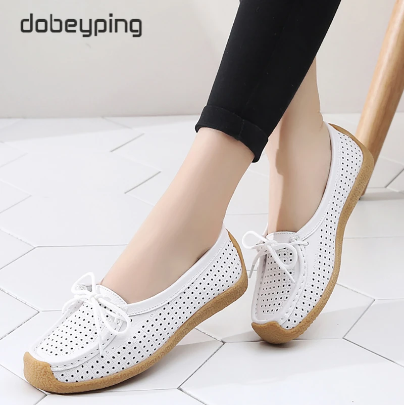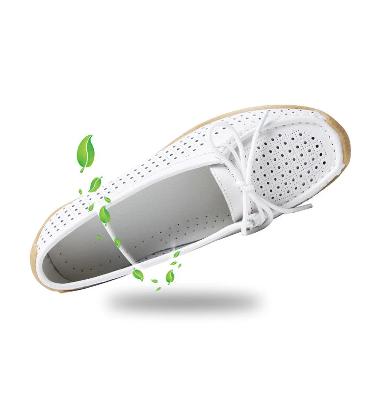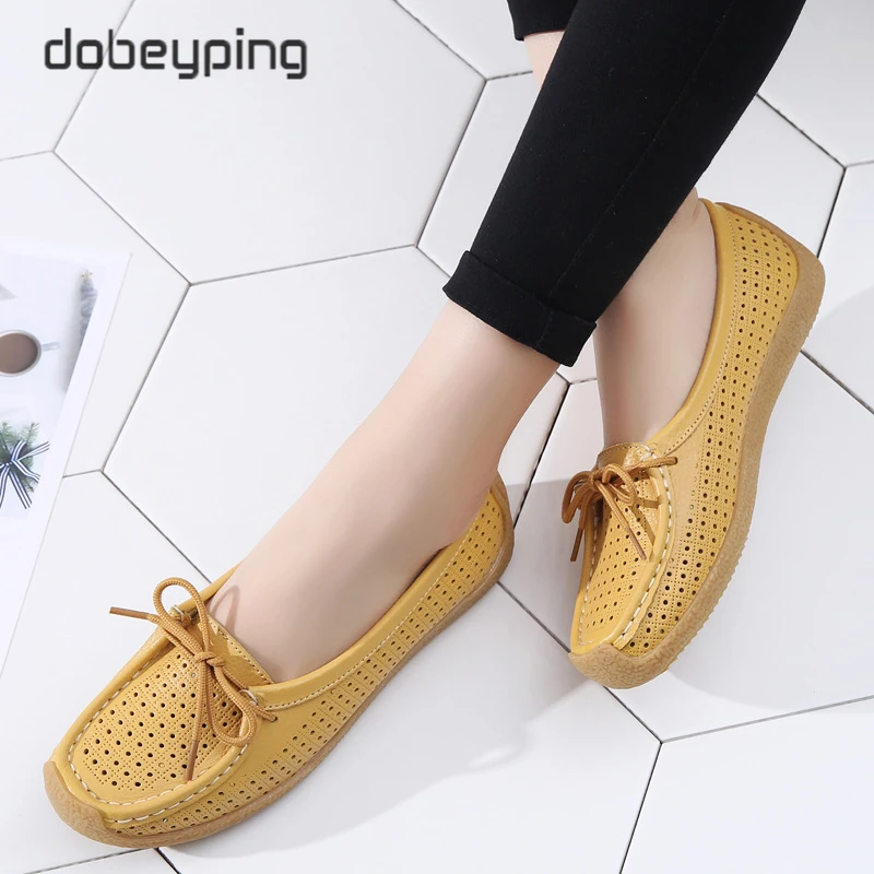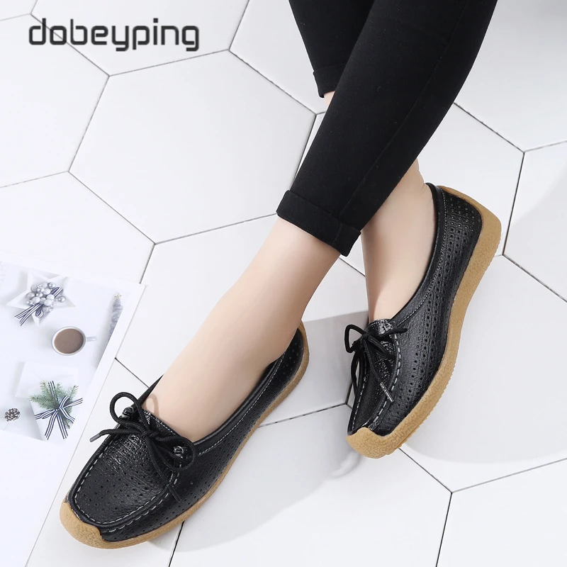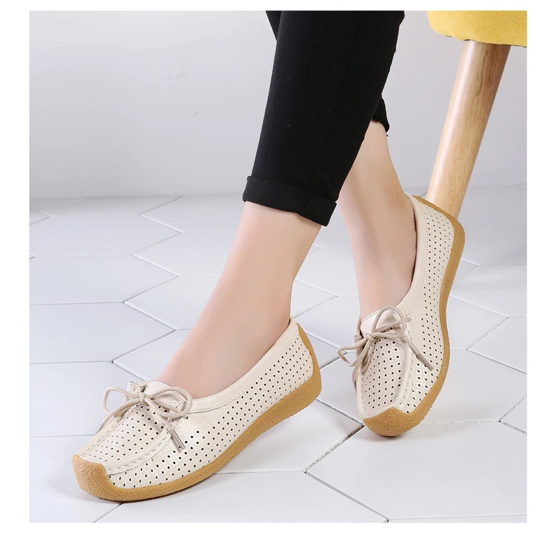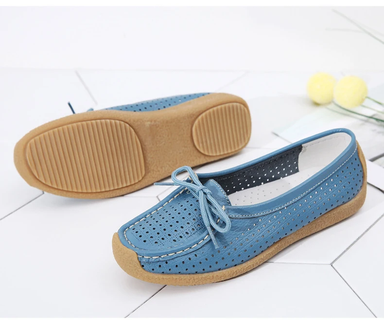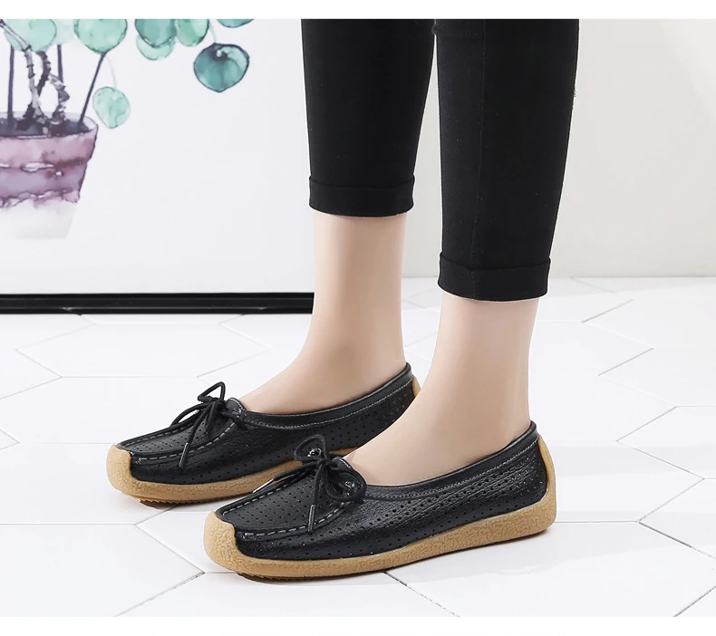 Туфли женские с вырезами, натуральная кожа, плоская подошва, лоферы, на шнуровке, Мокасины, модная летняя обувь