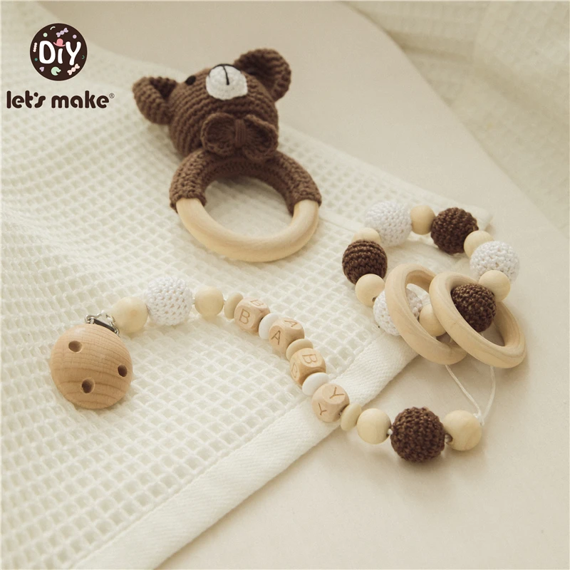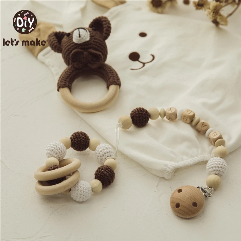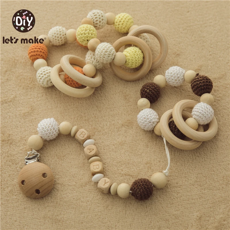 Детские игрушки Let's Make, грызунки, деревянные погремушки, брасле...