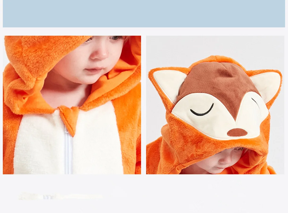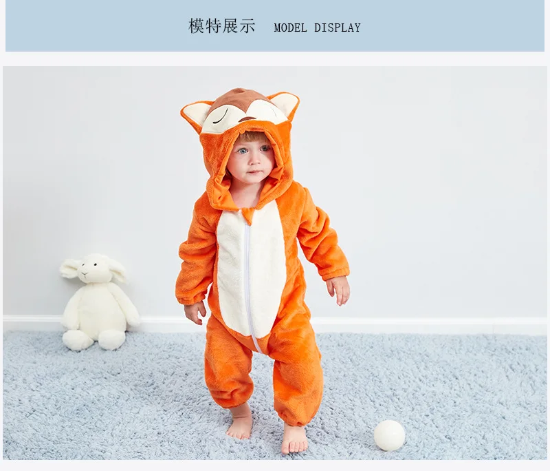 Новый детский спортивный костюм на осень и зиму для новорожденных Детский цельнокроеный Rmper Фланелевая пижама с рисунками из мультфильмов модная детская одежда с рисунком лисы; Детский хлопковый комбинезон для От 0 до 2 лет